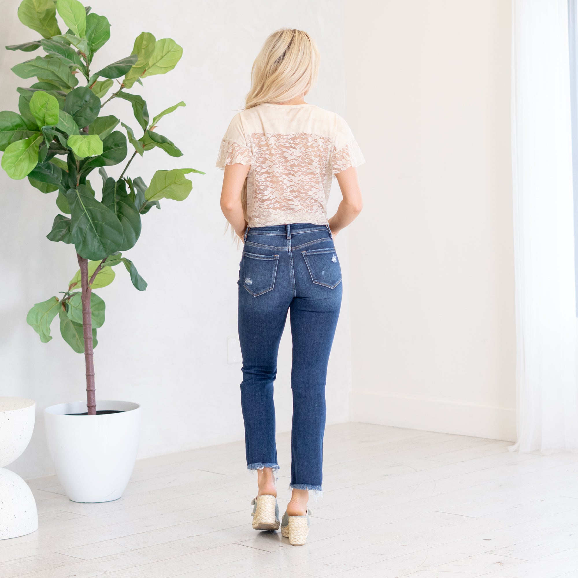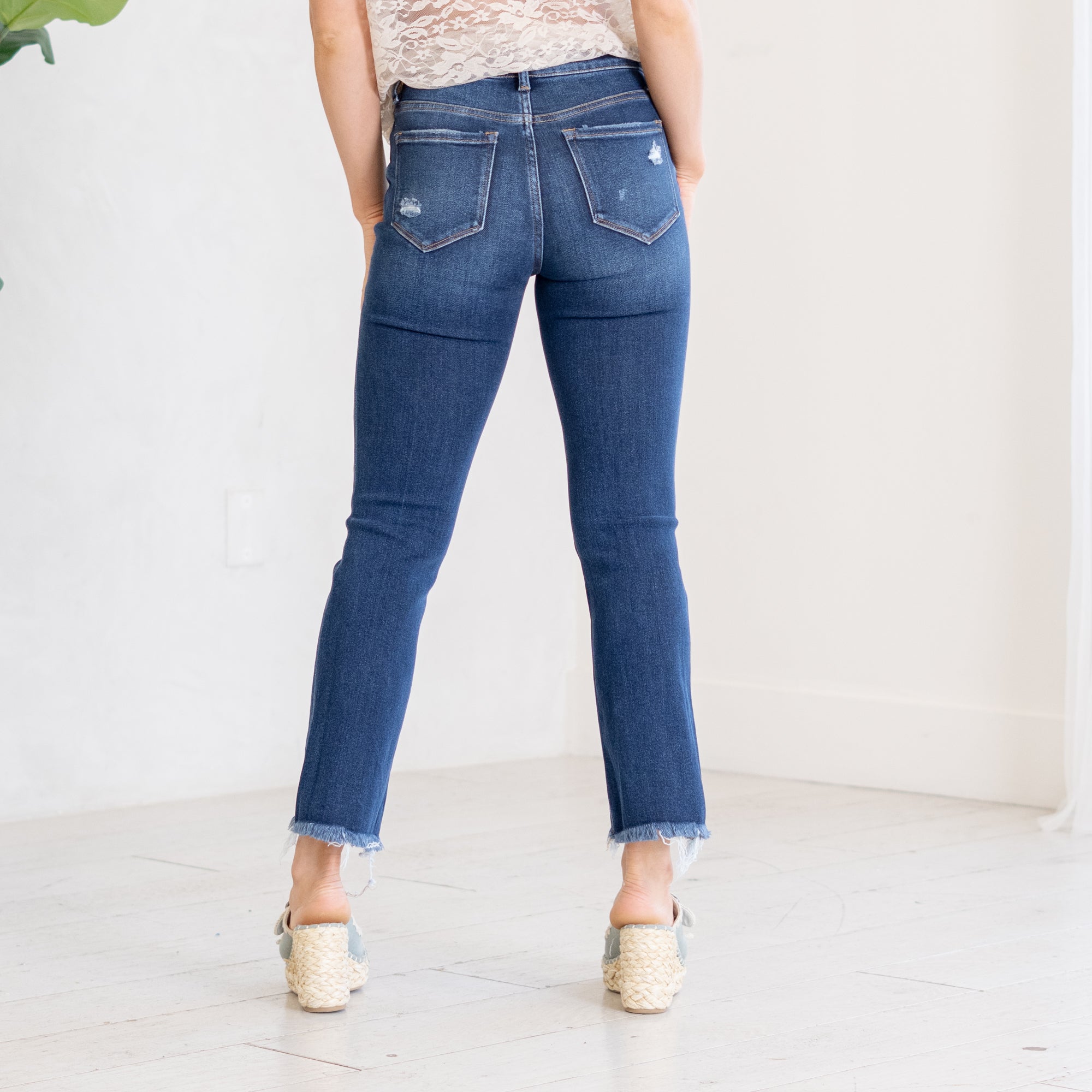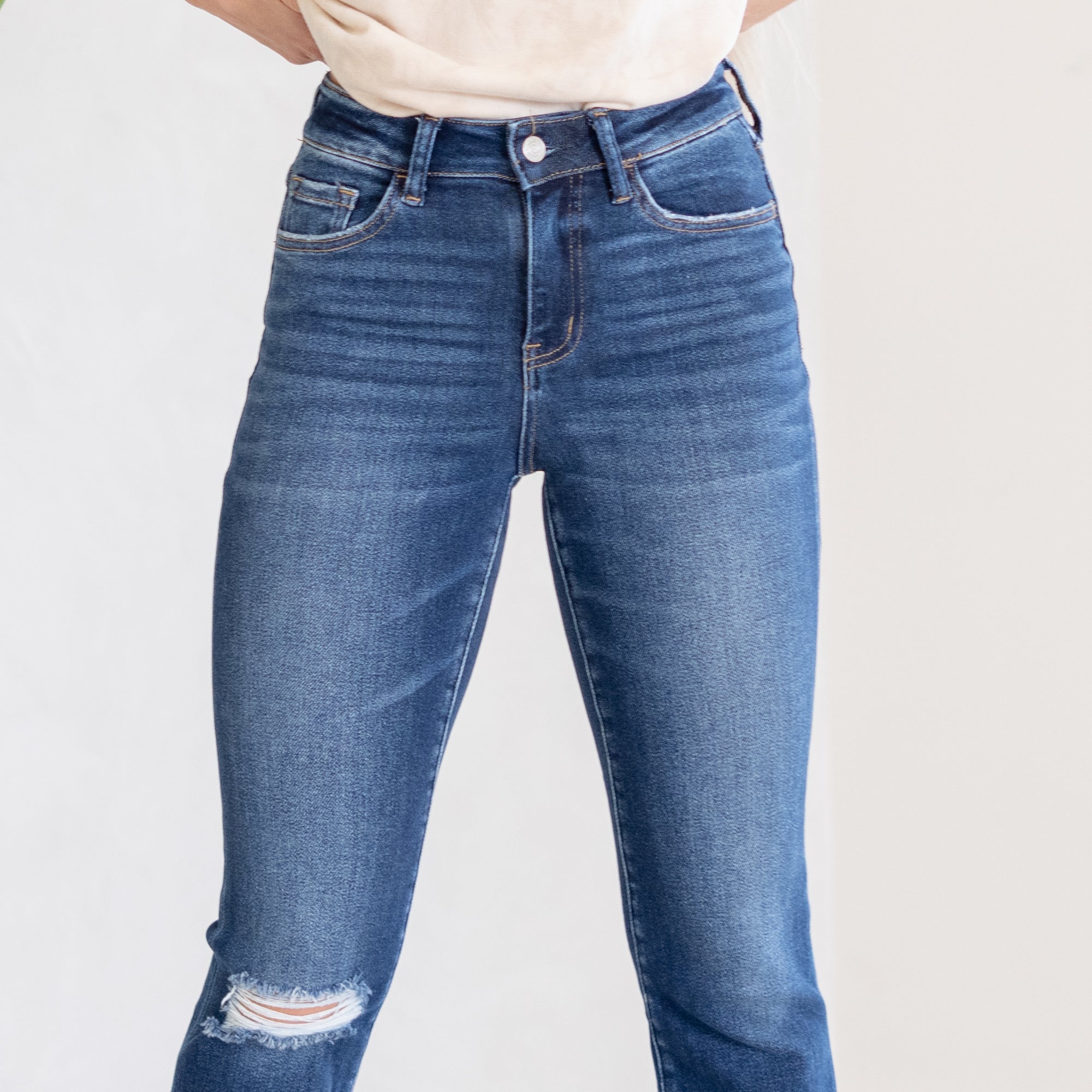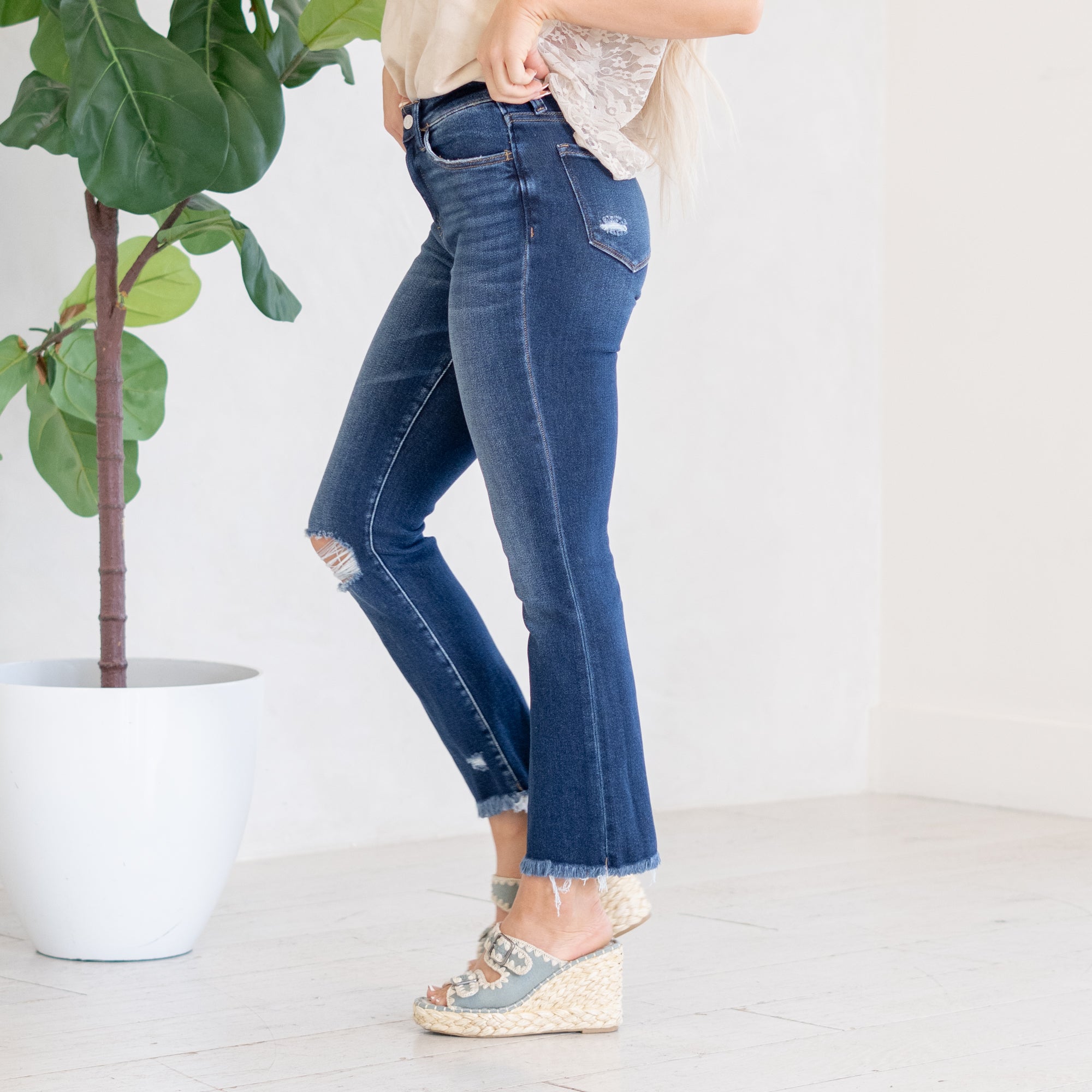 Judy Blue Midnight Muse Destroyed Flares Dark Blue Regular & Plus Sizes