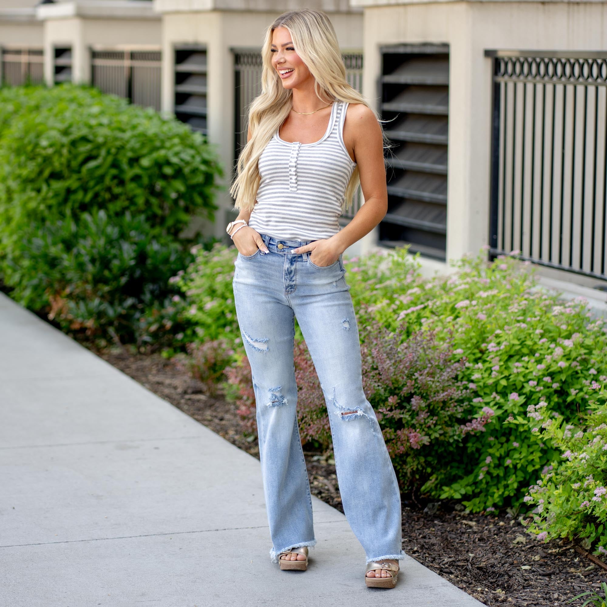Judy Blue jeans run generous and are very stretchy compared to other brands. We recommend sizing down one size in the skinny jeans, flares, and boot cuts and 2 sizes in the boyfriends or relaxed denim.