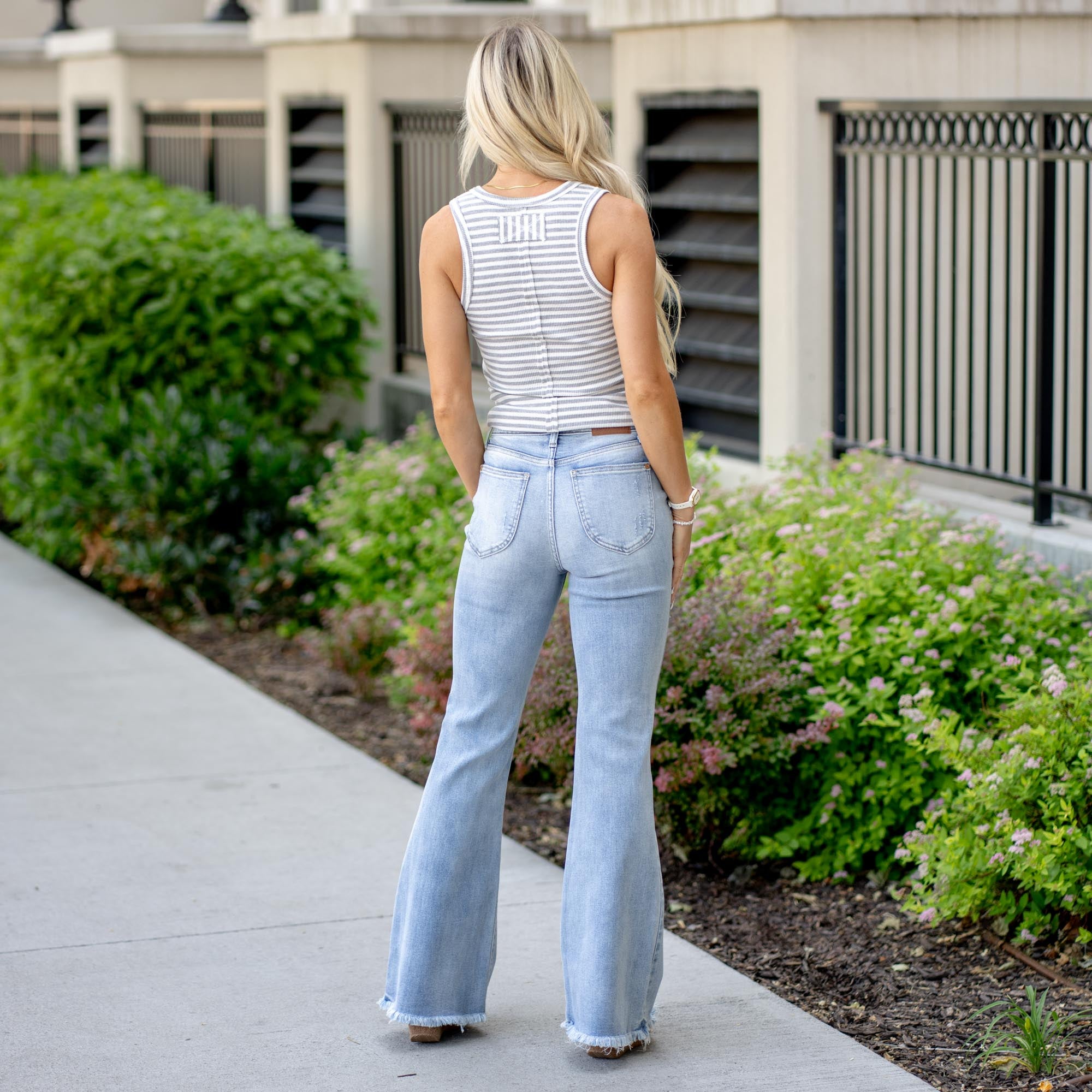 The Sierra Shield Flare by Judy Blue brings a bold, retro-inspired silhouette with modern comfort. Designed with a flattering high waist and statement-making flare leg, this style features unique shield-style back pockets that add a touch of vintage western flair. Crafted from Judy Blue’s signature comfort stretch denim, they hug your curves while giving you the freedom to move. Dress them up with boots or down with sneakers—either way, this flare is built to stand out.