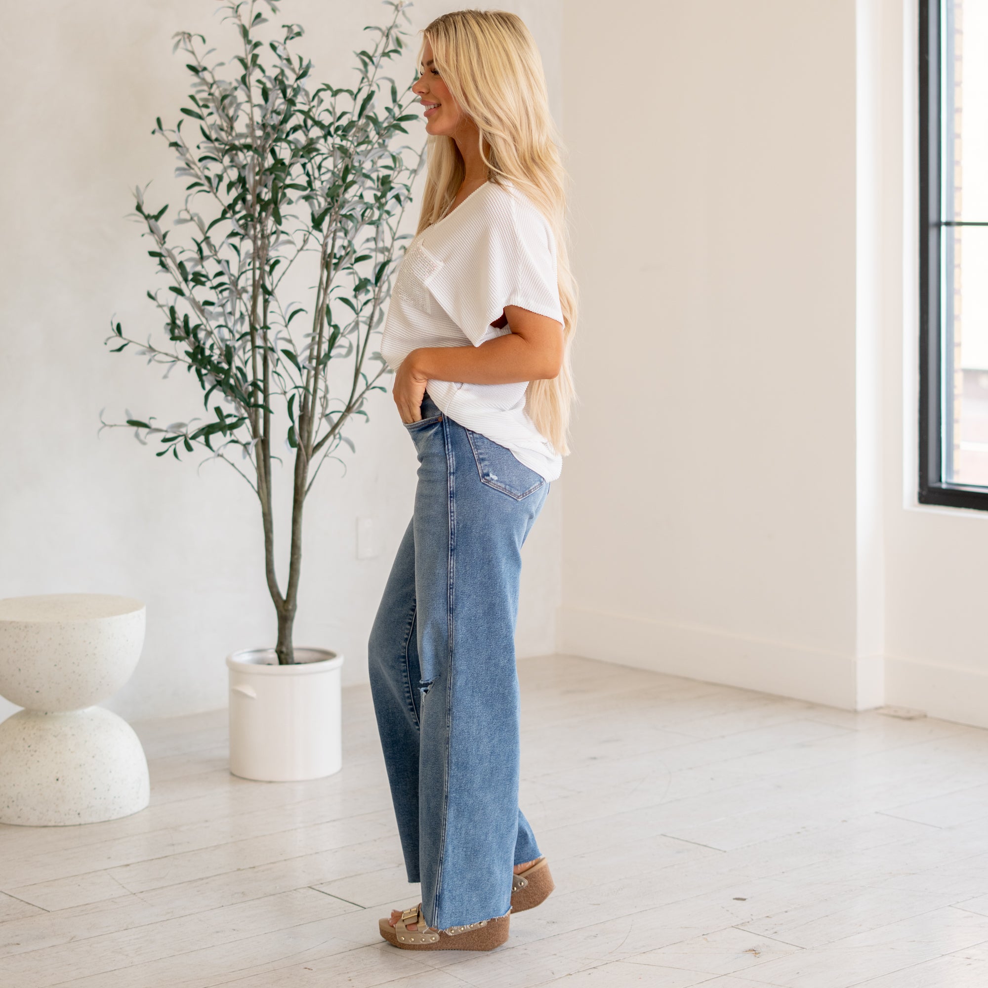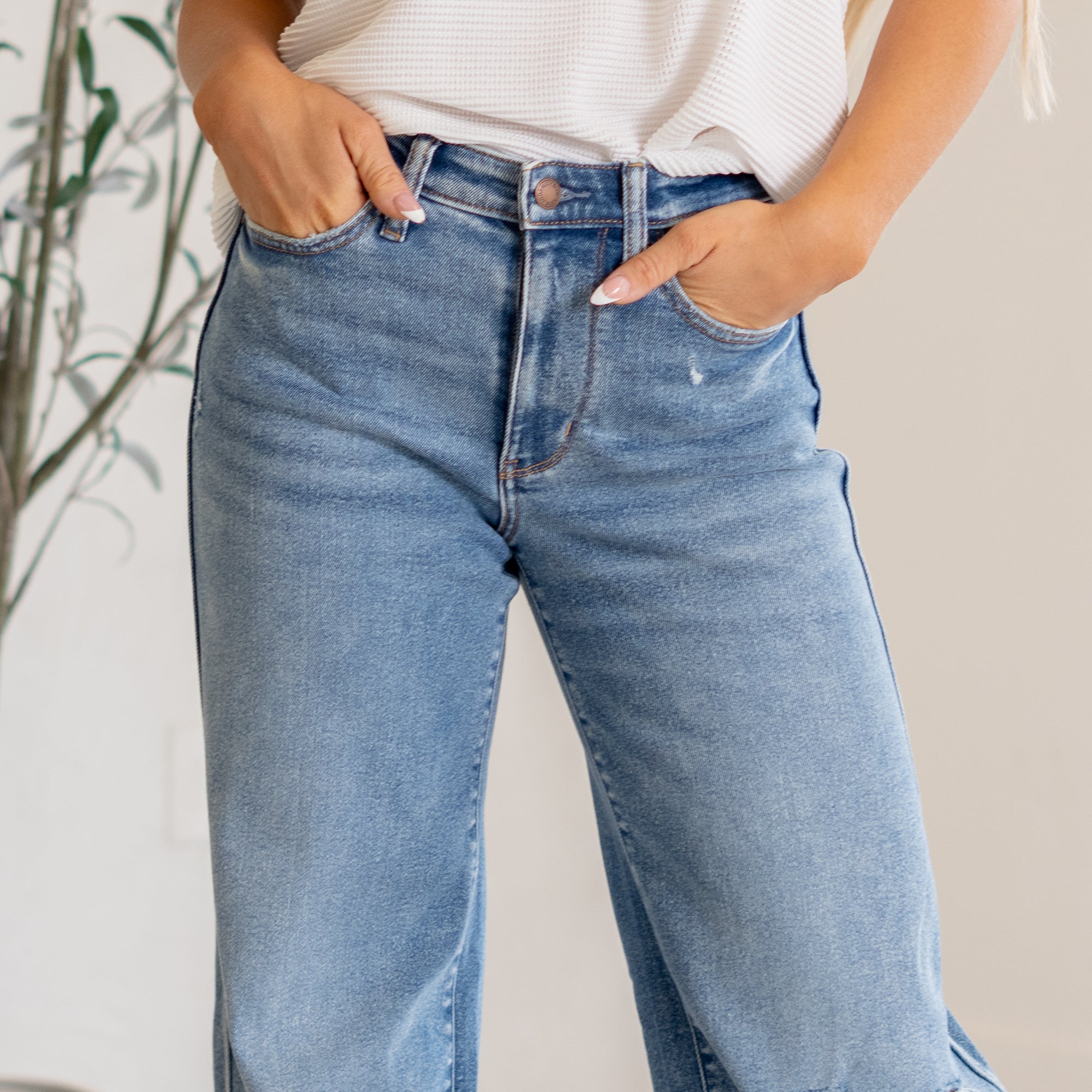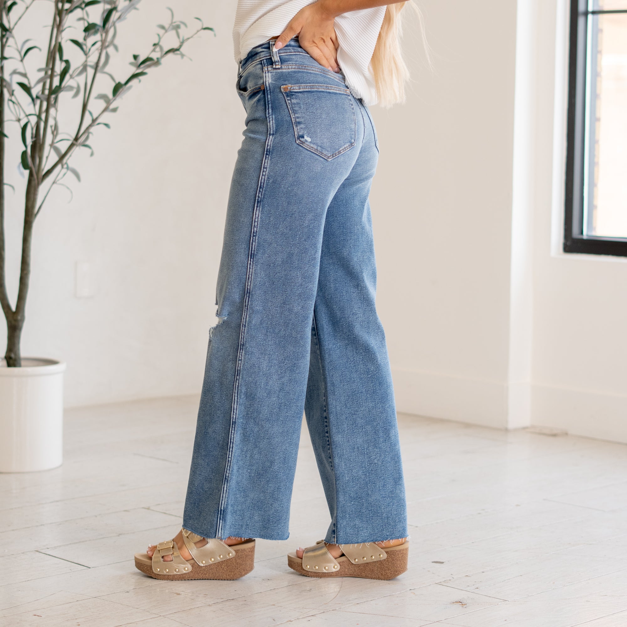Vintage Wash Distressed Wide Leg Regular & Plus Sizes