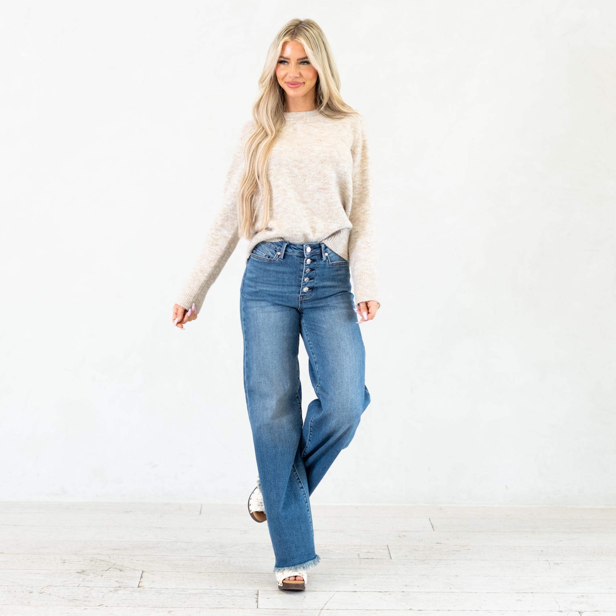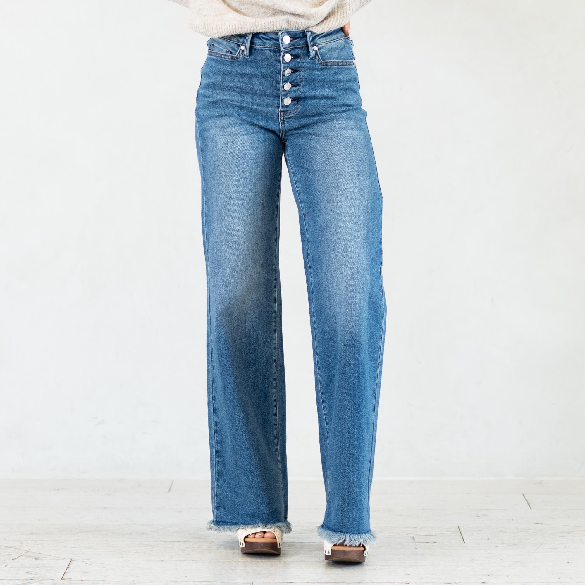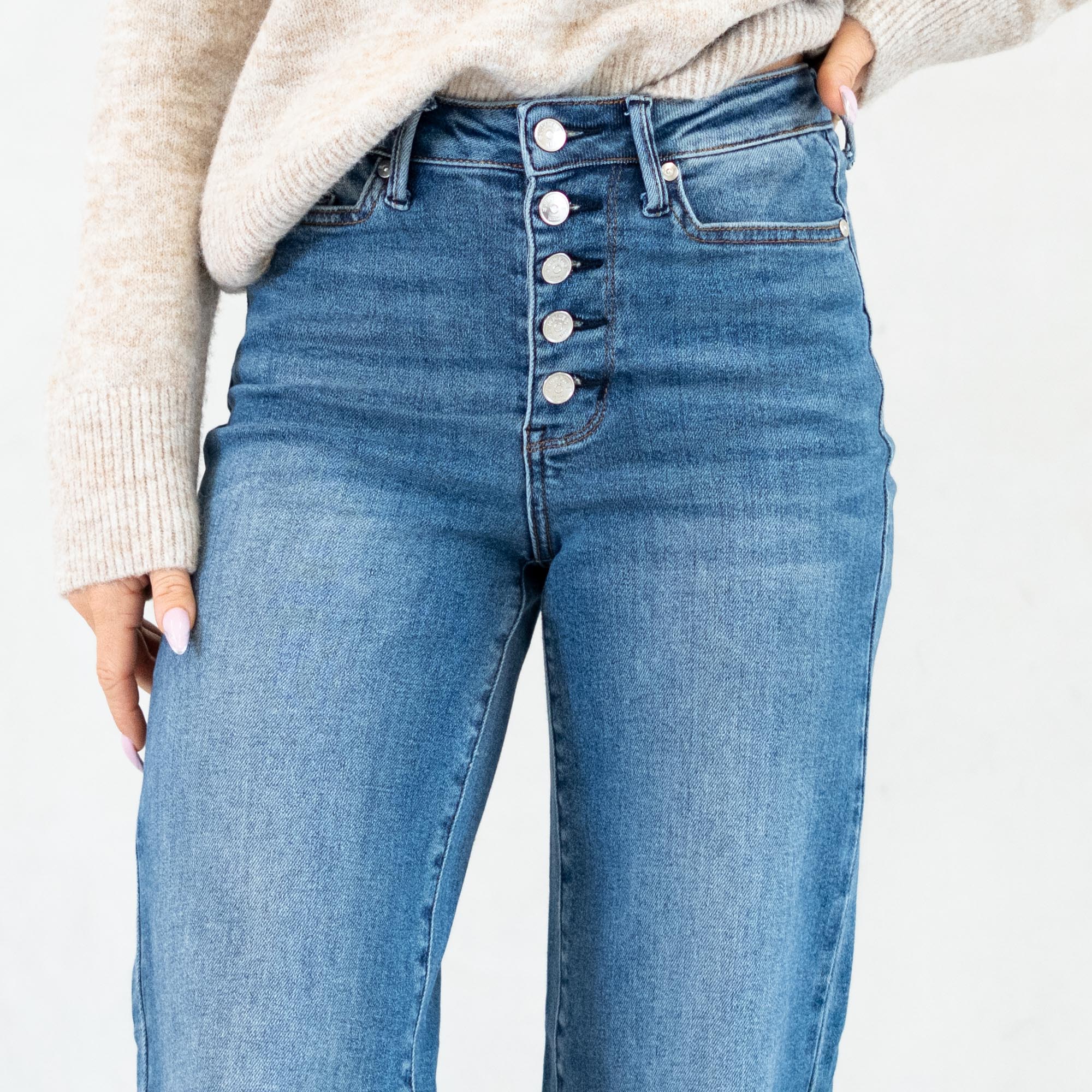 The Rowan High Rise Column Straight Jeans bring structure and sophistication to your everyday denim. Featuring a clean straight-leg silhouette and a sleek button-fly front, these jeans are all about polished, modern style. The back welt pockets add a tailored touch, while Judy Blue’s signature stretch denim ensures all-day comfort without losing its shape. Designed to sit high on the waist for a flattering, elongating fit — this pair transitions effortlessly from workdays to weekends. A timeless piece with just the right mix of refinement and ease.