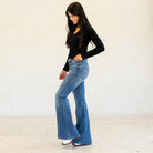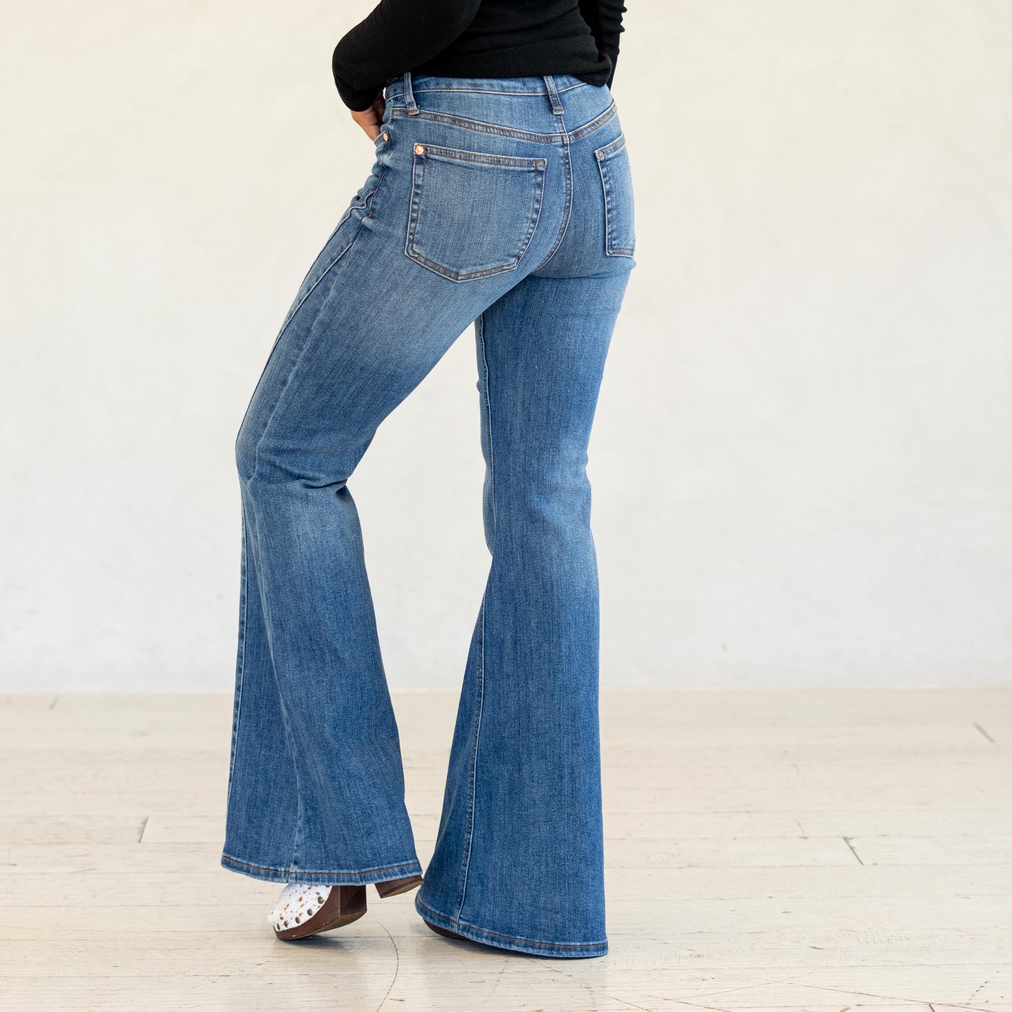 Judy Blue Jaqueline Mid Rise Sculpted Flare Jeans Medium Blue