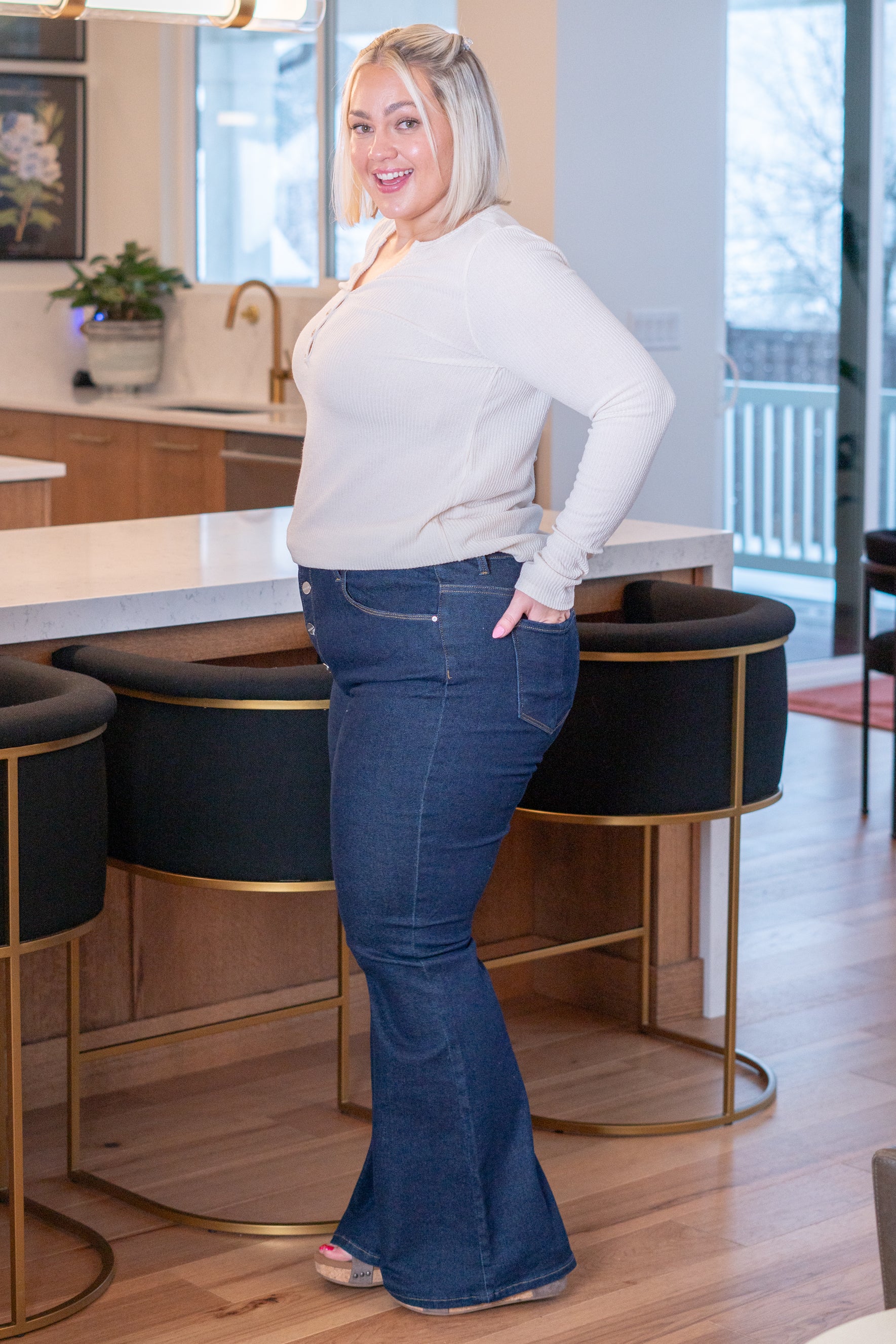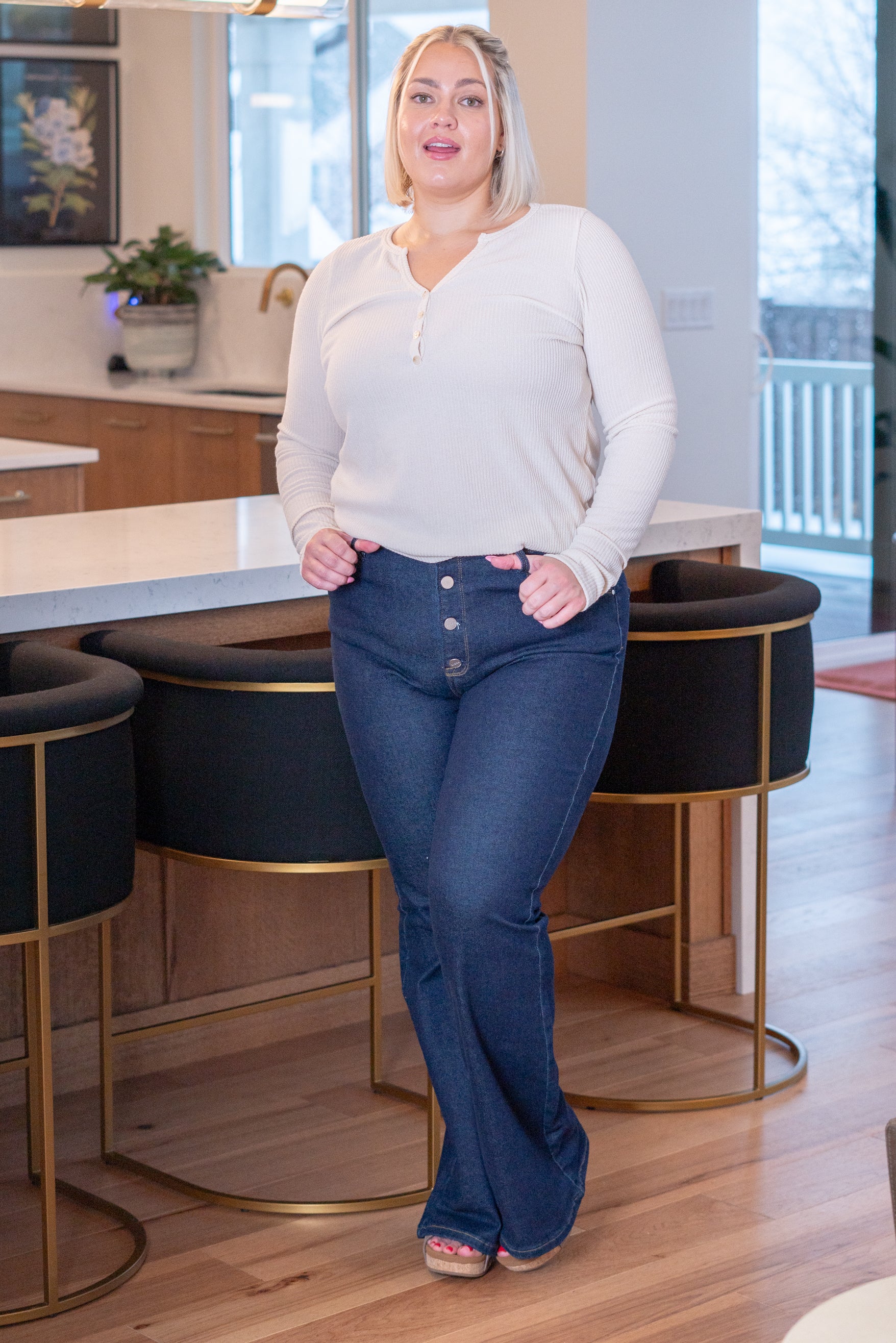 Step into the perfect fusion of retro cool and modern chic with our Mid-Rise Button Down Flare Jeans. The mid-rise cut ensures a flattering fit, while the button-down detailing adds a touch of vintage charm. Embrace the flare silhouette for a timeless look that effortlessly transitions from casual outings to stylish nights on the town. These jeans are your go-to for a fashion-forward statement that never goes out of style.