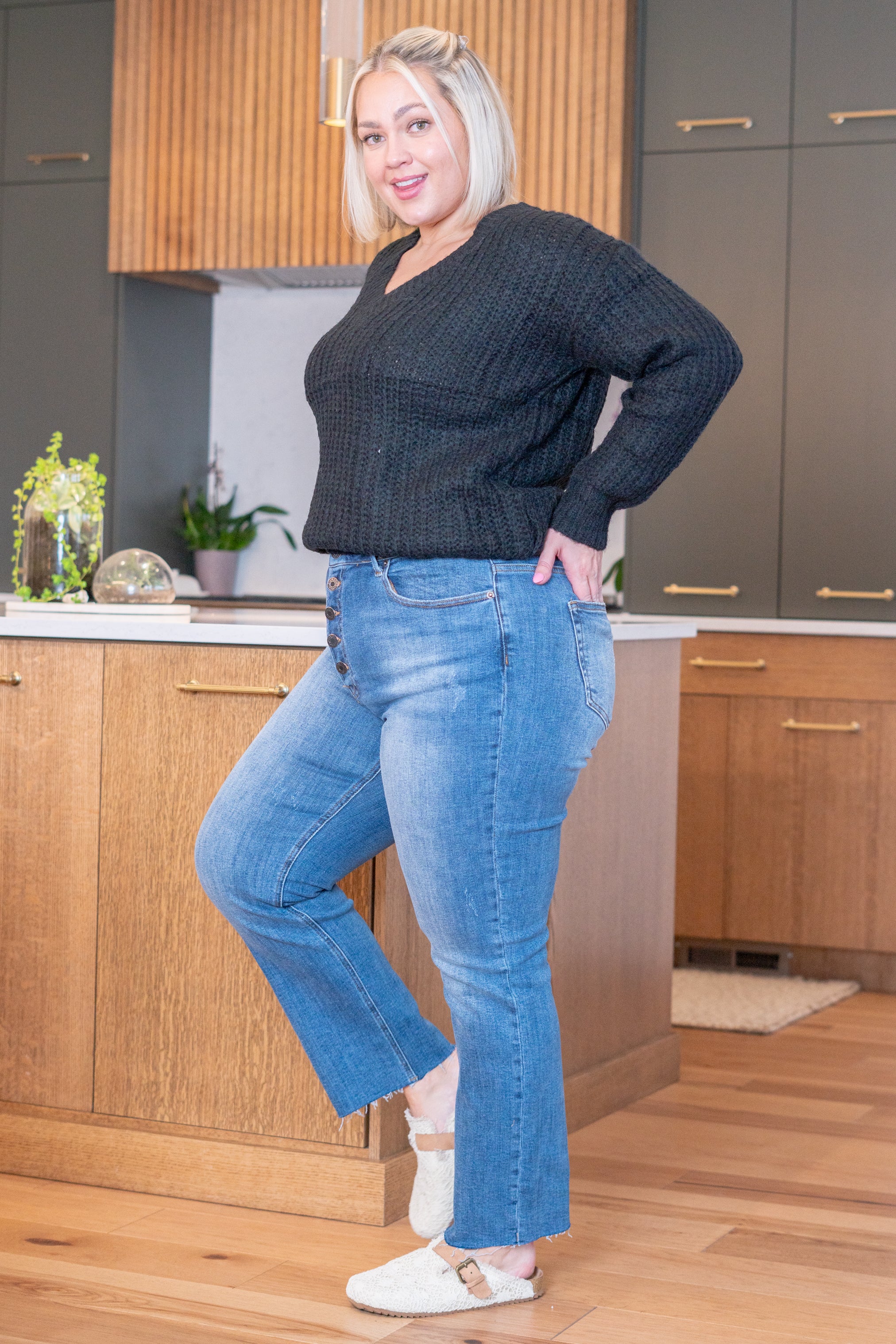 Plus Size Presley Ann Mid Rise Button Fly Relaxed Skinny