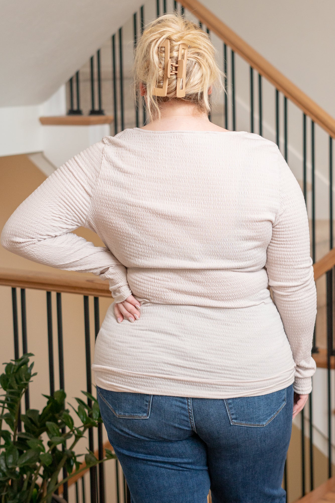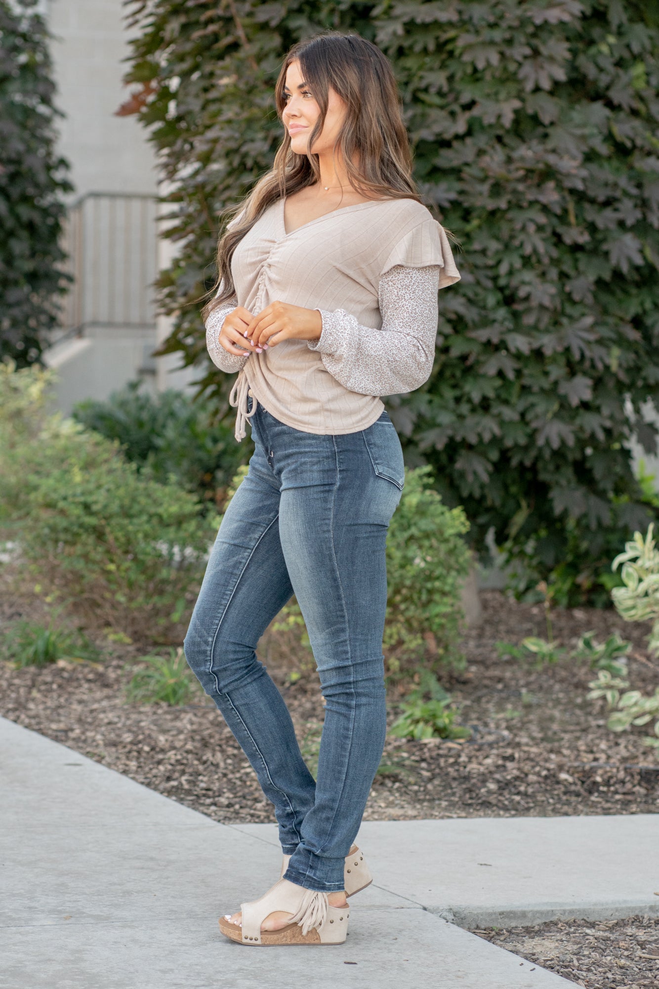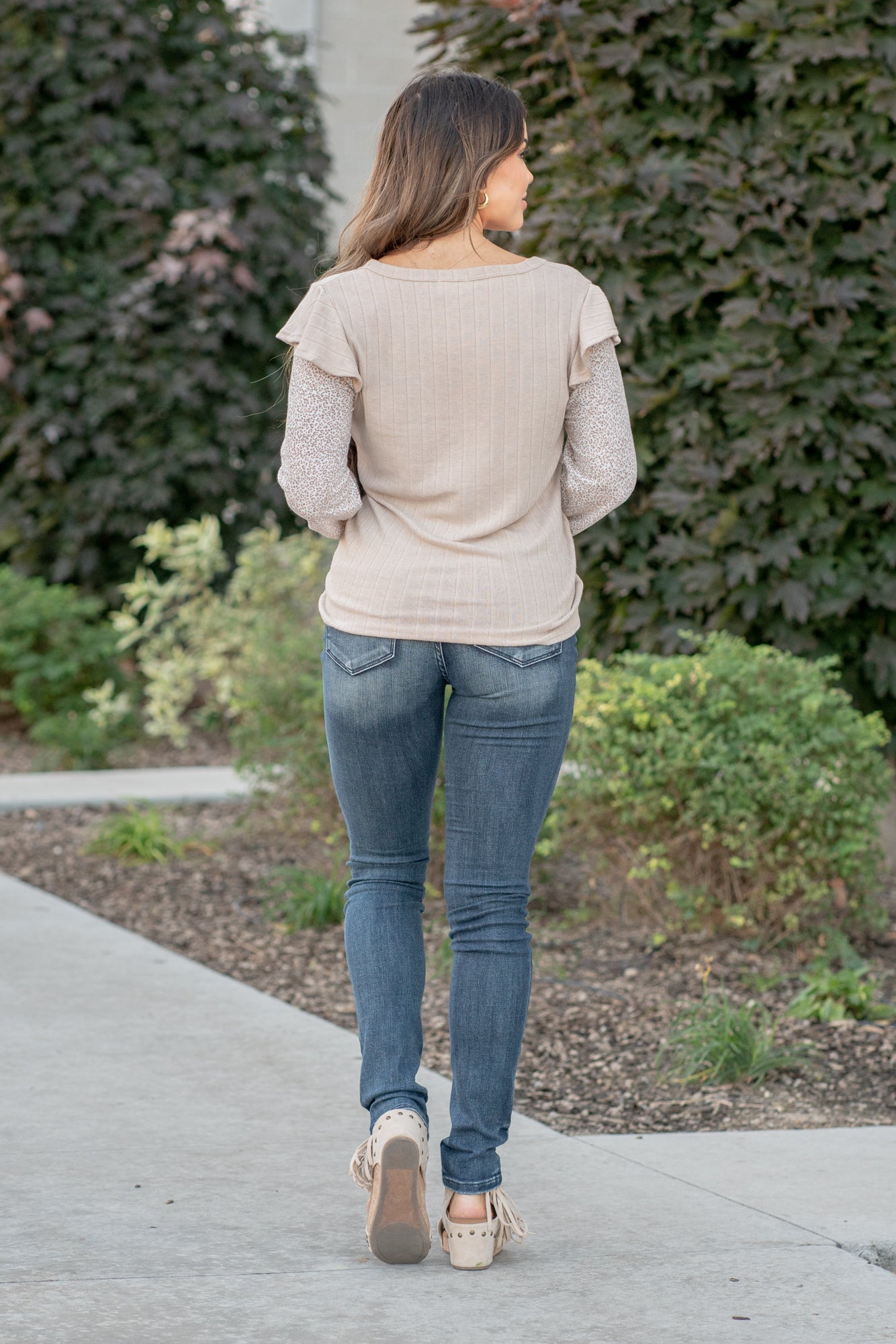 'Tis The Season Velvet Tiered Blouse - Taupe