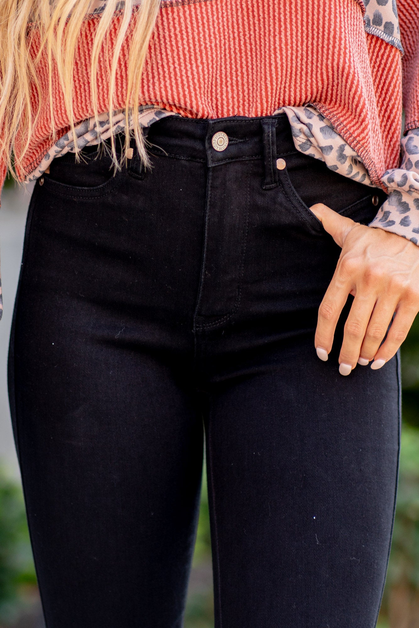 Elevate your denim collection with our Black Judy Blue High Waisted Tummy Control Shield Pockets Skinny jeans, designed to blend style with comfort seamlessly. These jeans feature a flattering high waist that offers tummy control for a smooth silhouette. Crafted from black denim, they exude a sleek and versatile aesthetic that pairs effortlessly with any outfit. The shield pockets add a modern touch, combining functionality with fashion. Perfect for day-to-night wear, these jeans are crafted from high-quality materials to ensure durability and all-day comfort. Whether you're dressing them up with heels or keeping it casual with sneakers, they're a versatile staple for your wardrobe.