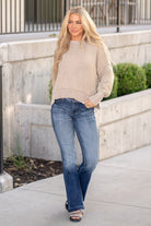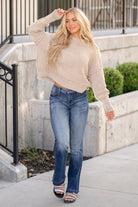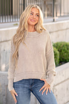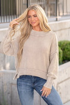 Exposed Seam Round Neck Dropped Shoulder Sweater