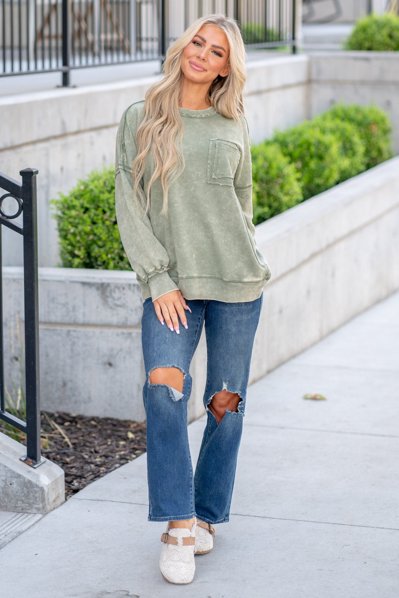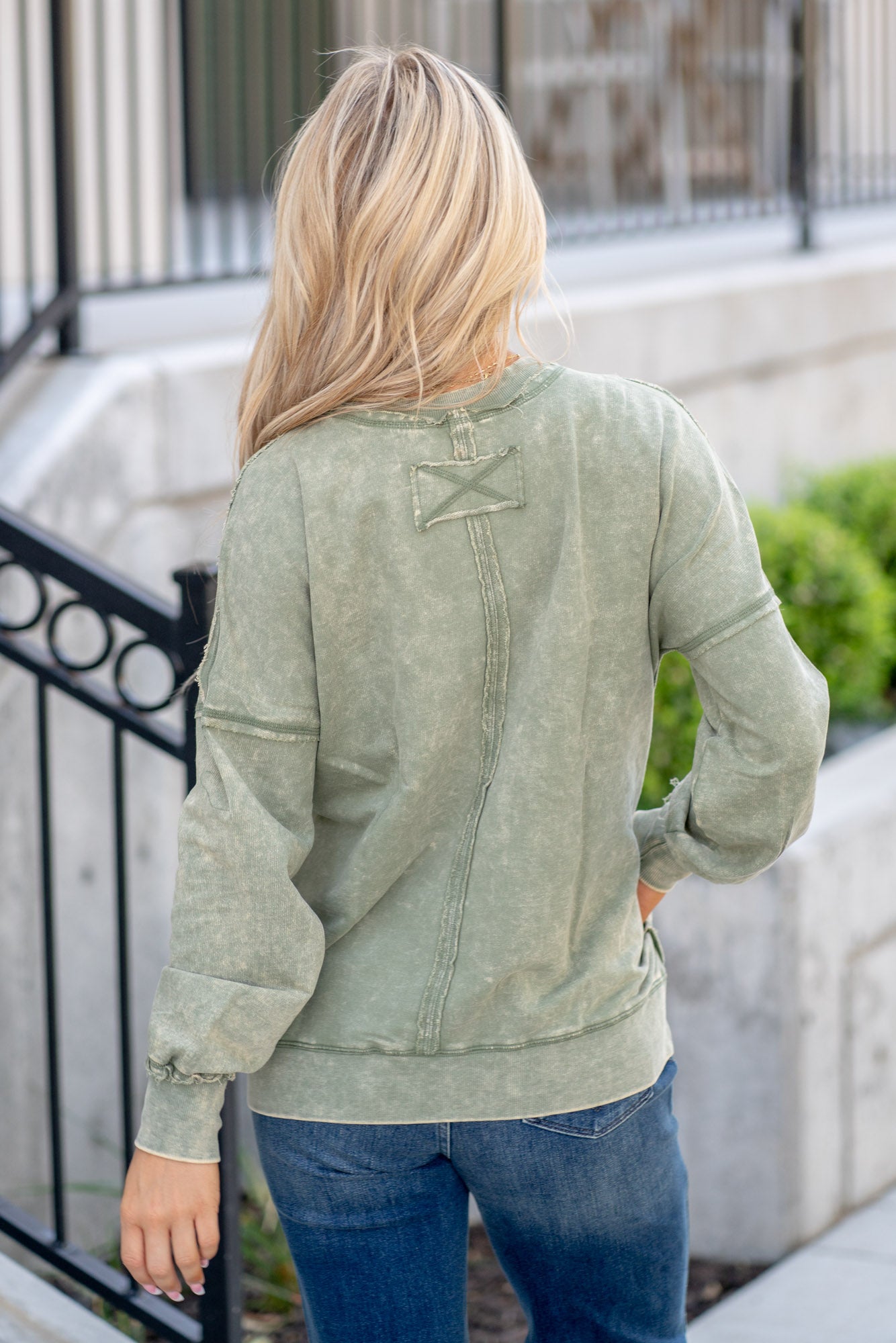 Exposed Seam Round Neck Dropped Shoulder Sweatshirt
