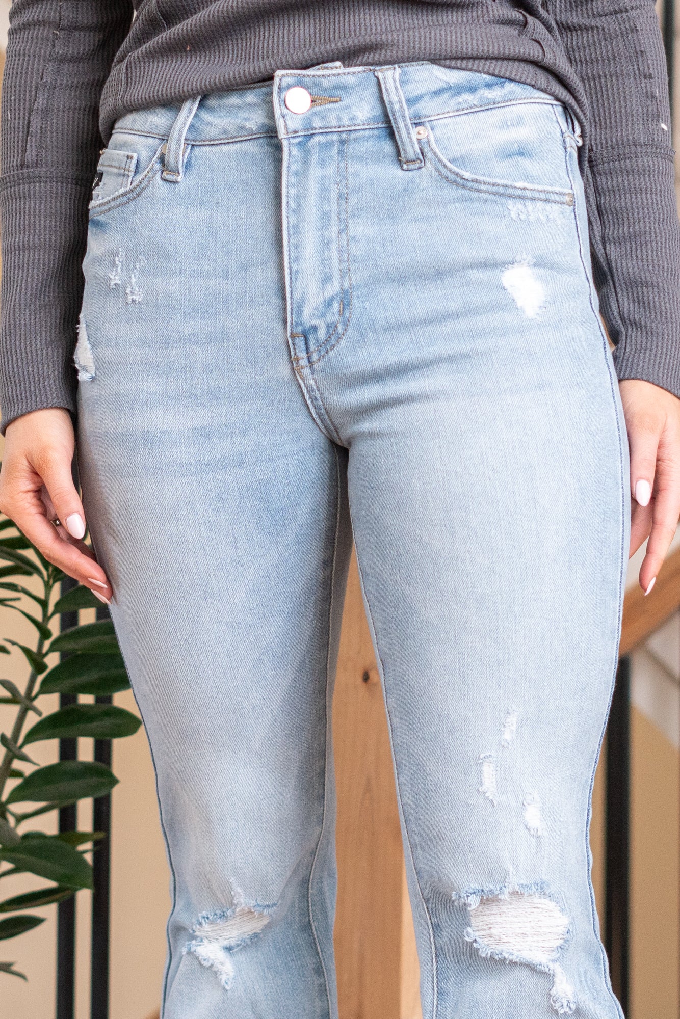 High Rise Flare Jeans offer a stylish and comfortable fit. Crafted from stretch fabric, they provide both flexibility and fashion. These jeans feature a regular hem, classic 5-pocket style, and a convenient zipper fly.