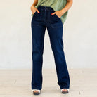 VERVET Jubilant Reflections Super High Rise Full Length Vintage Flare Jeans Dark Blue Wash