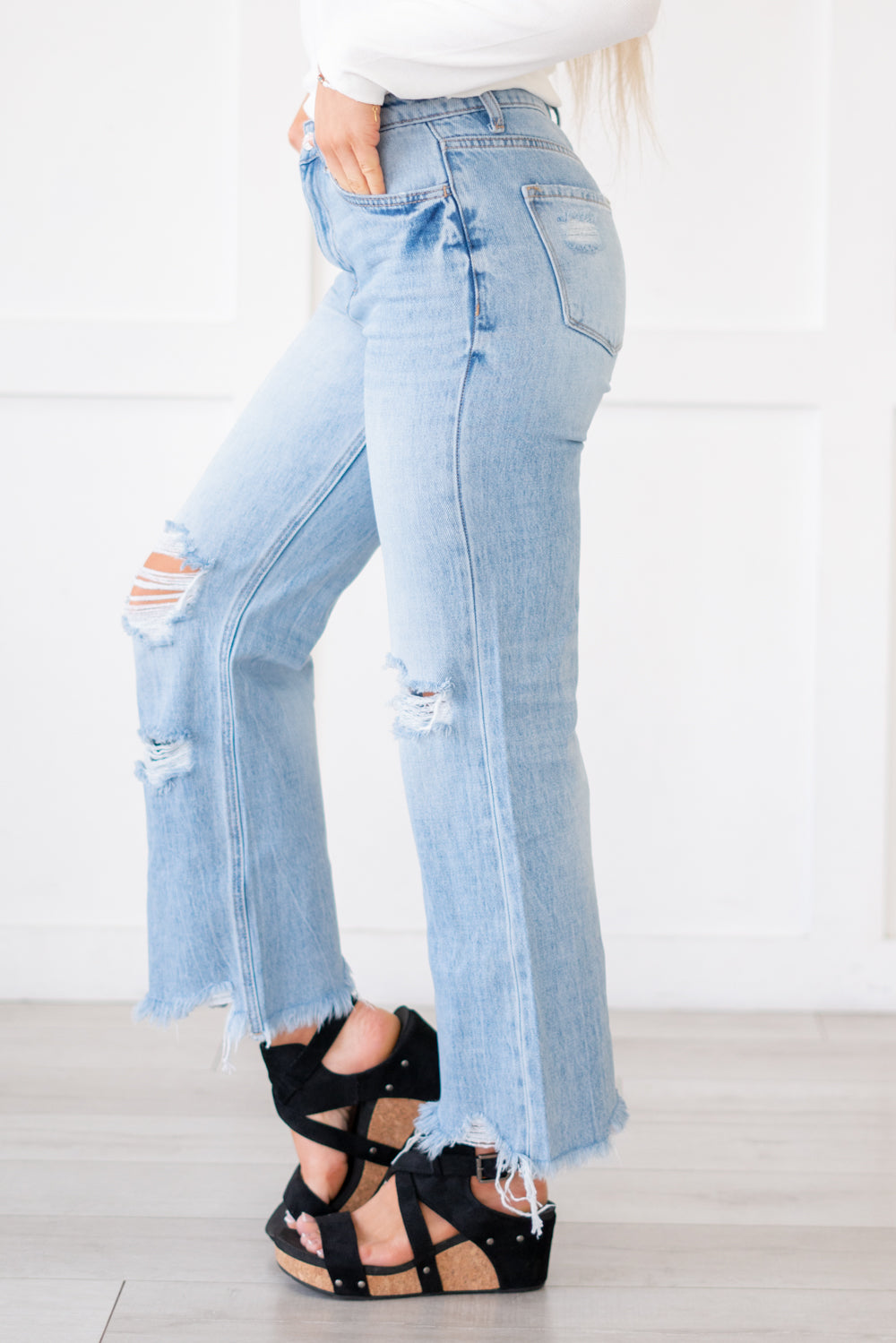 Flying Monkey Reasonable Mid Rise Raw Distressed Hem Crop Flare