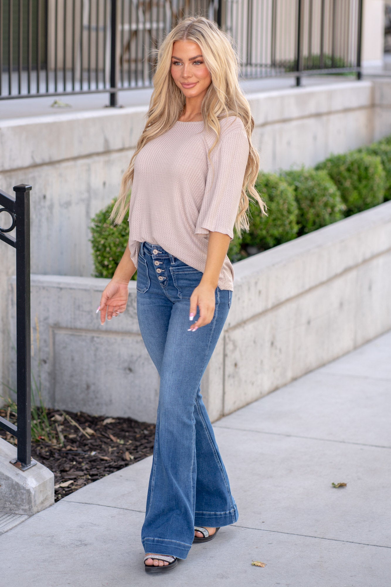 Privilege Mid Rise Raw Hem Kick Flare