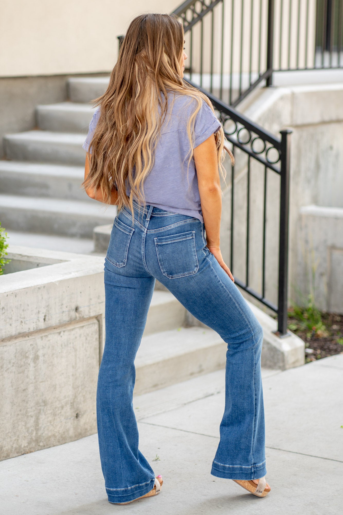 Judy Blue Meadow Mid Rise Flare Jeans Medium Blue Wash Regular & Plus Sizes
