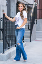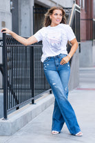 Comfort stretch denim and a slouchy fit make these cute 90s jeans a perfect statement piece.