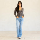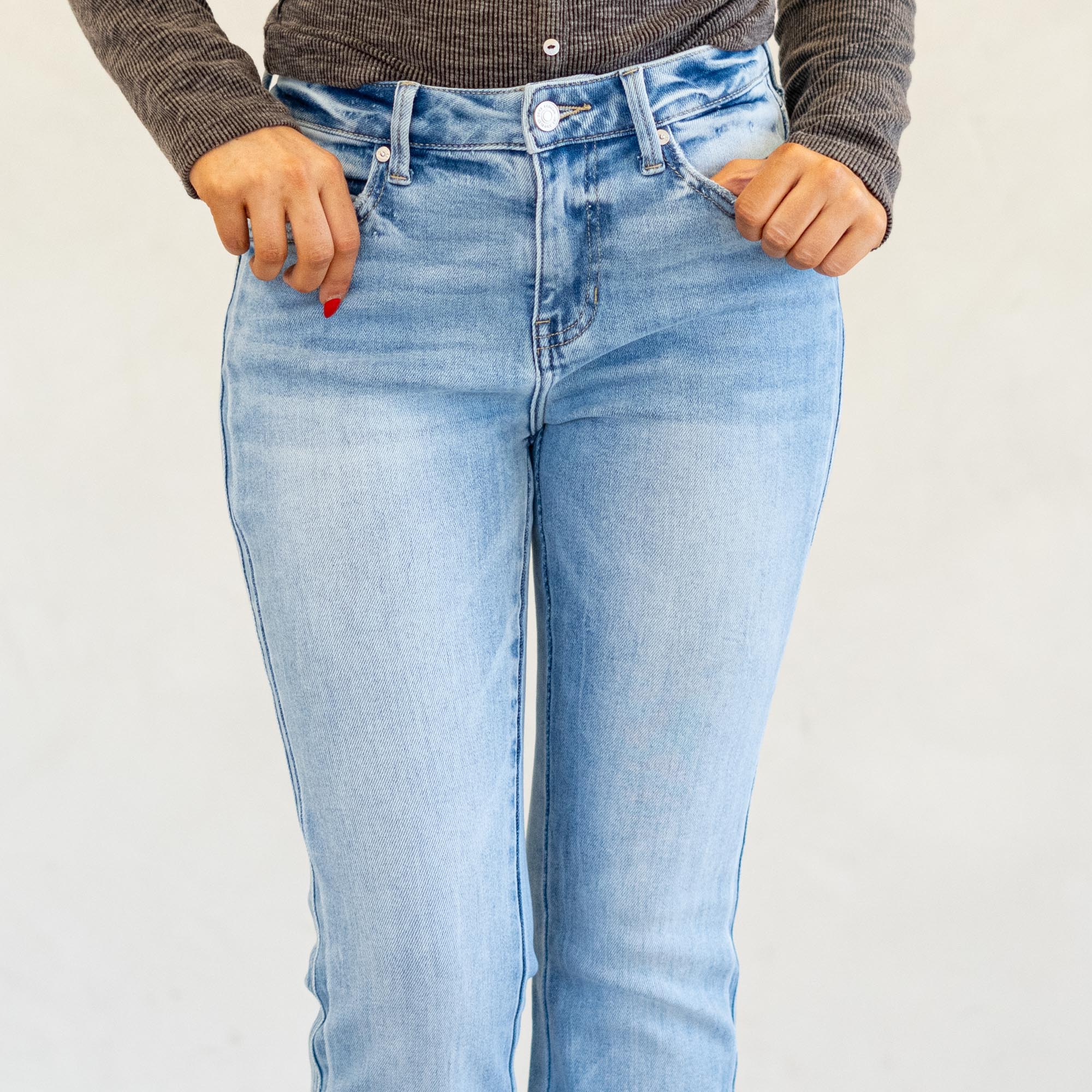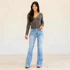 Bring effortless charm to your everyday denim with our Azul Mid Rise Flare Jeans. Designed in a soft light wash that gives a breezy, sun-washed feel, these jeans strike the perfect balance between classic and contemporary. The mid-rise fit sits comfortably below the navel, hugging your waist and hips before gently flaring out from the knee for that timeless silhouette.