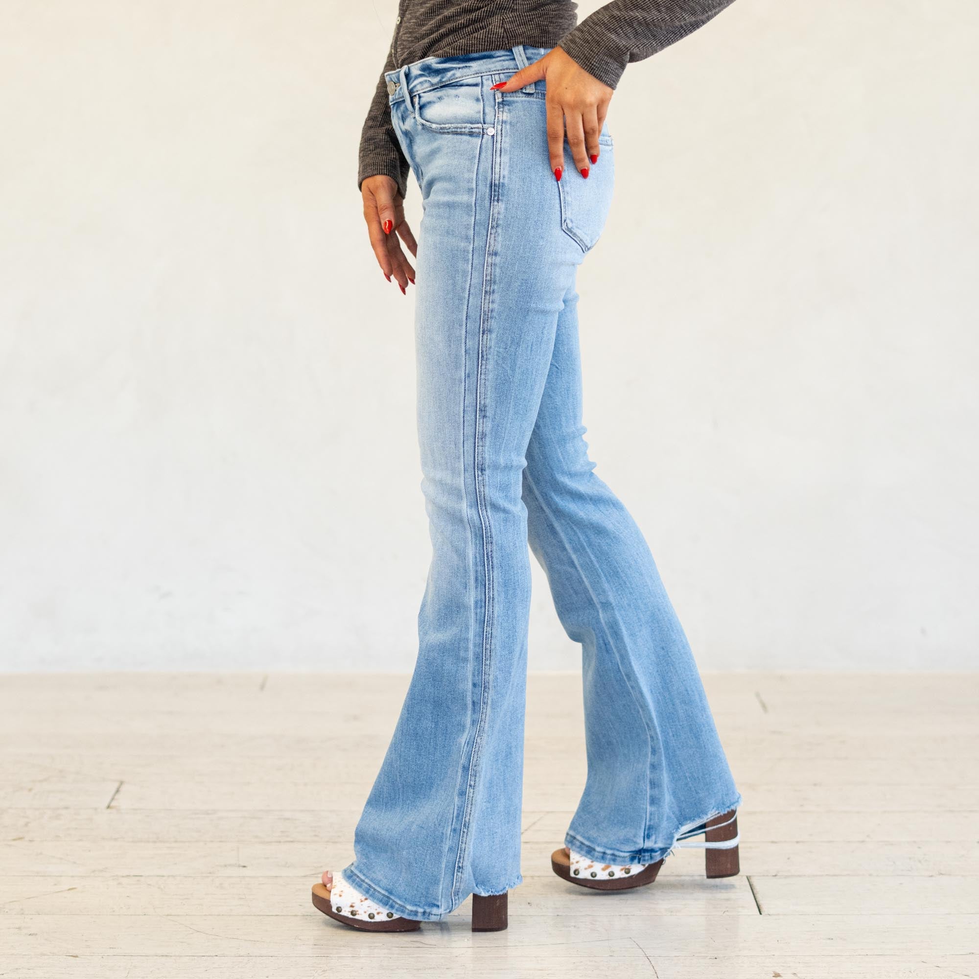 KanCan Azul Mid Rise Flare Jeans Light Blue Wash