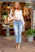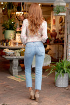 Sarah wears a size 25 in jeans, a small in tops, and 8 in shoes. She is wearing size 25 in these jeans.