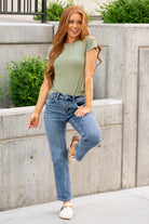 The Stay Together ankle straight jeans are a high-rise fit with a comfortable stretch. Pair with your favorite wedges and blouse for a cute spring look.