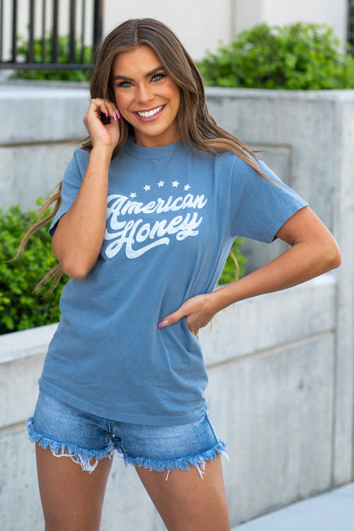 Zutter Rock N Roll Vintage Eagle Graphic Blue T-Shirt