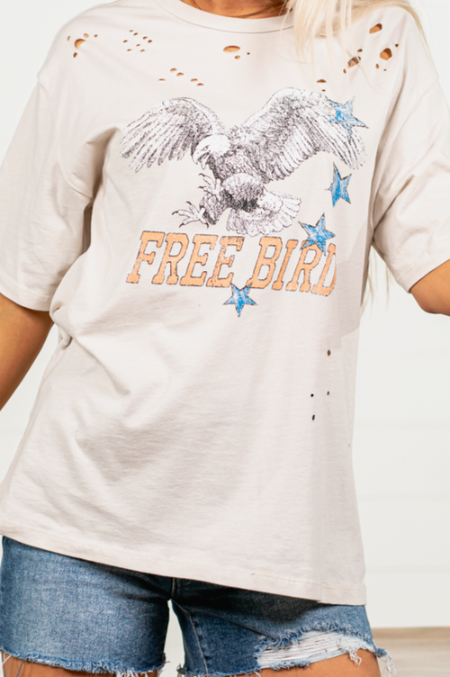 Zutter Free Bird Vintage Graphic Grey T-Shirt