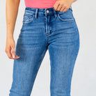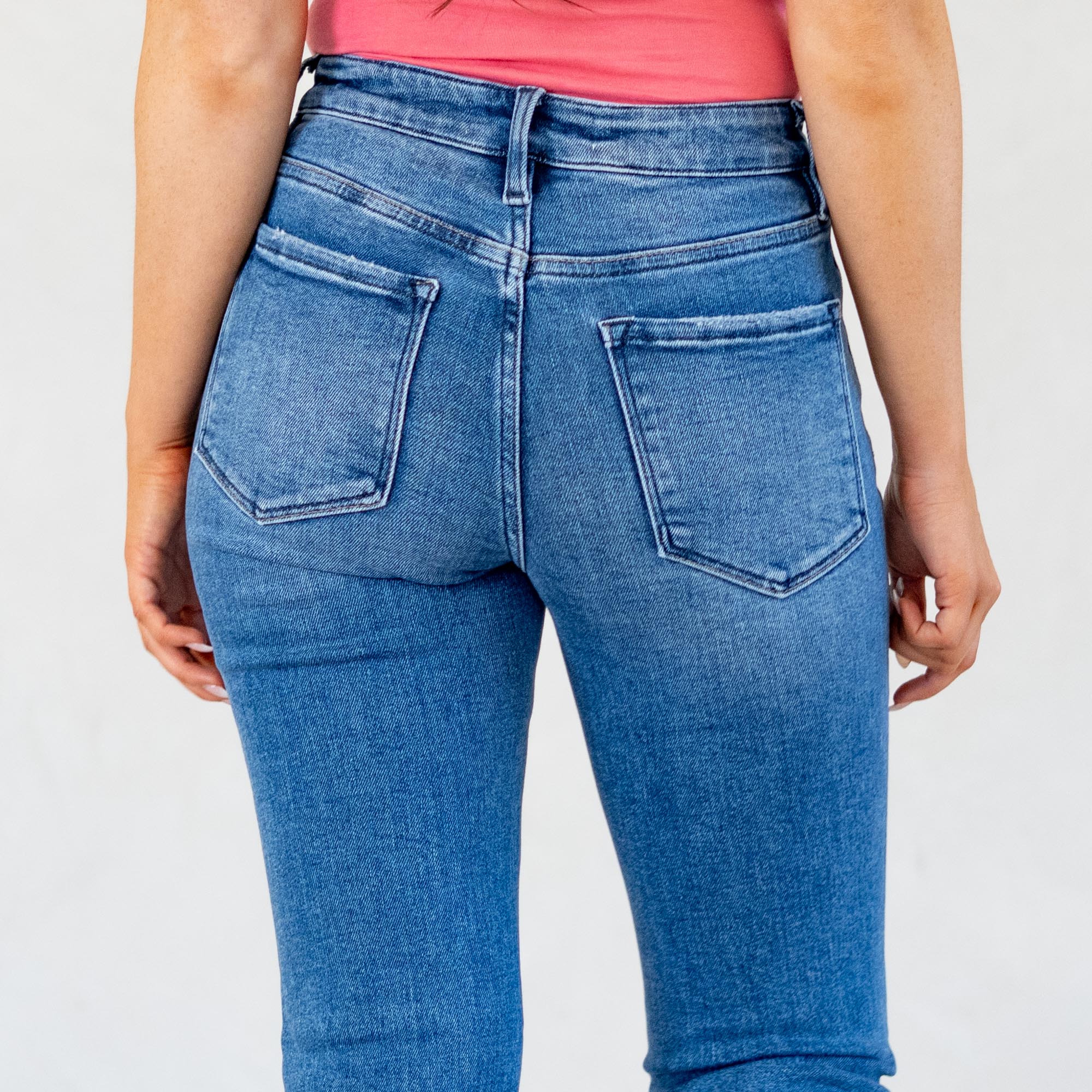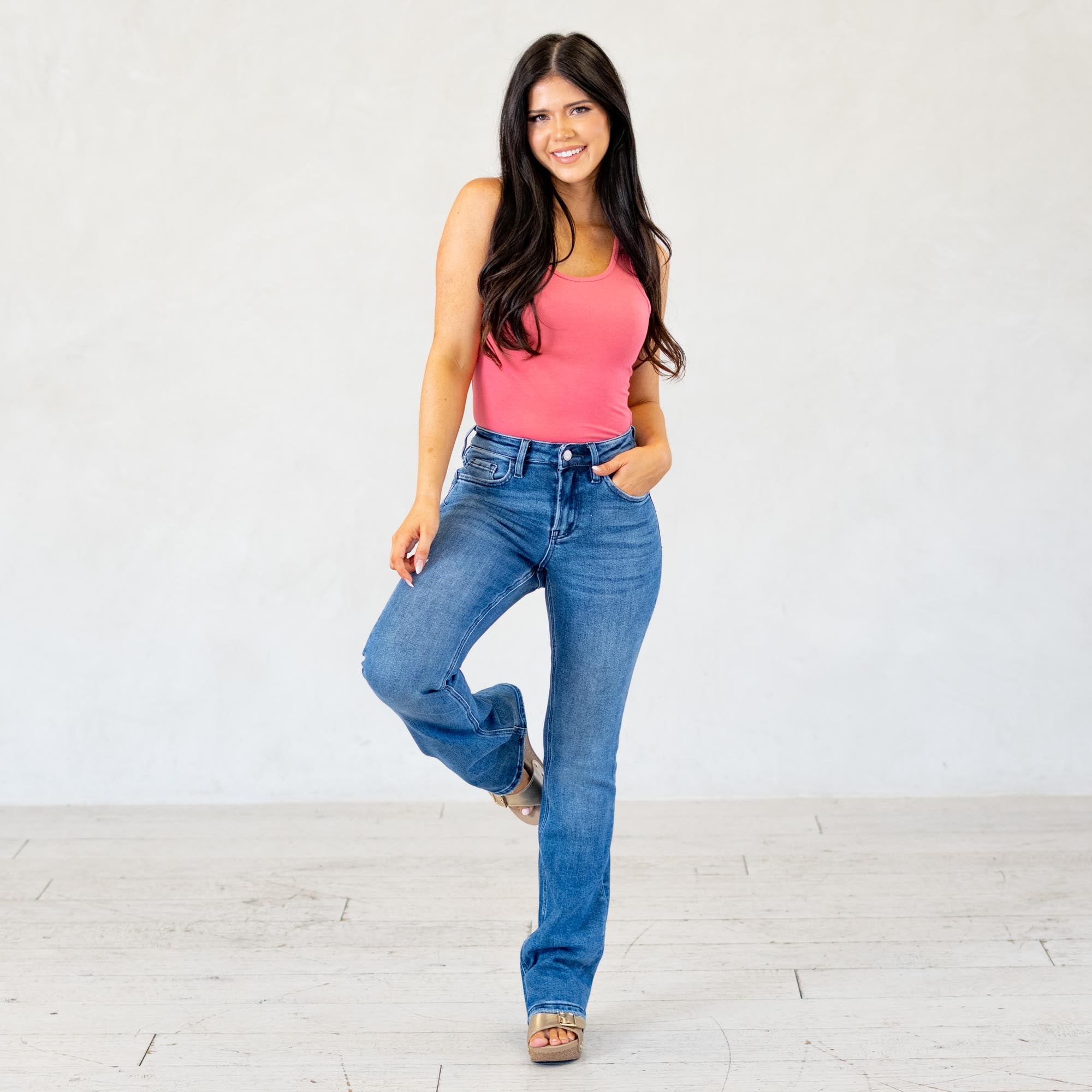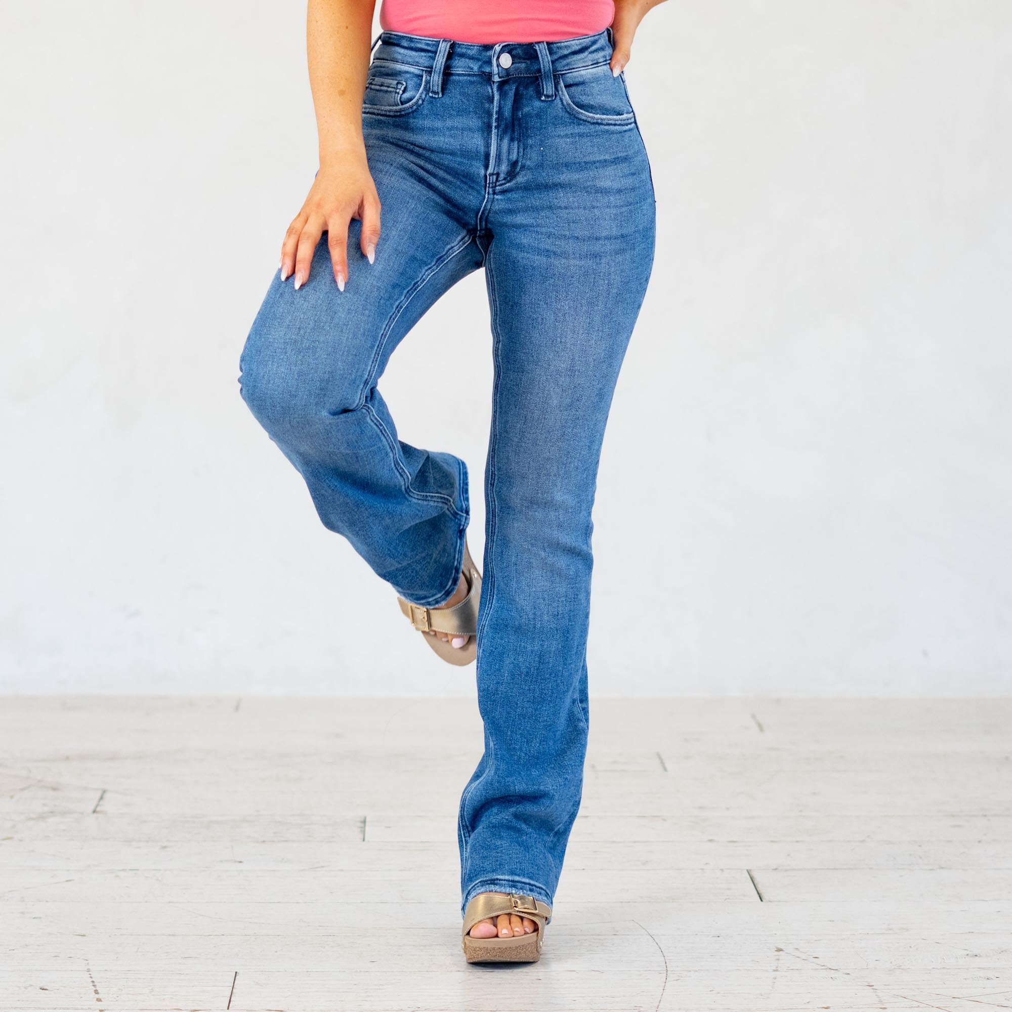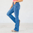 LOVERVET Neatness High Rise Full Length Bootcut Jeans Medium Blue Wash