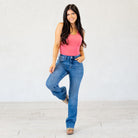 Refined, sleek, and endlessly versatile — the Neatness High Rise Bootcut Jeans are your go-to for an elevated denim look. Designed with a flattering high-rise waist that hugs and smooths your curves, these jeans open into a clean bootcut leg that elongates your silhouette from hip to hem.