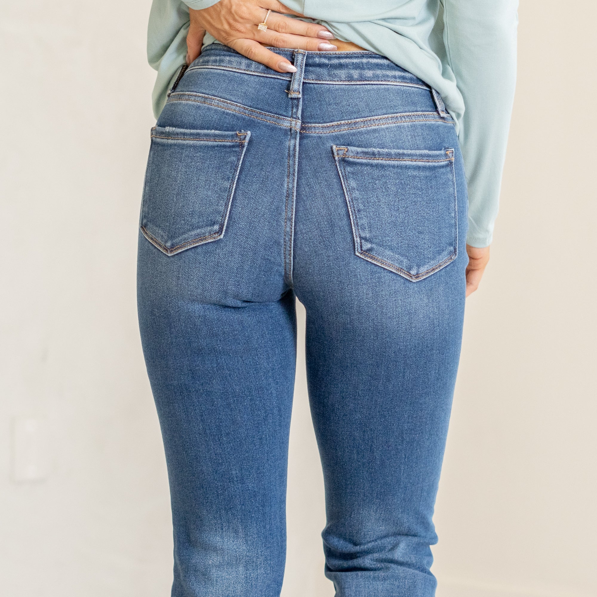 VERVET Snowdrop High Rise Trouser Hem Boot Cut Medium Blue