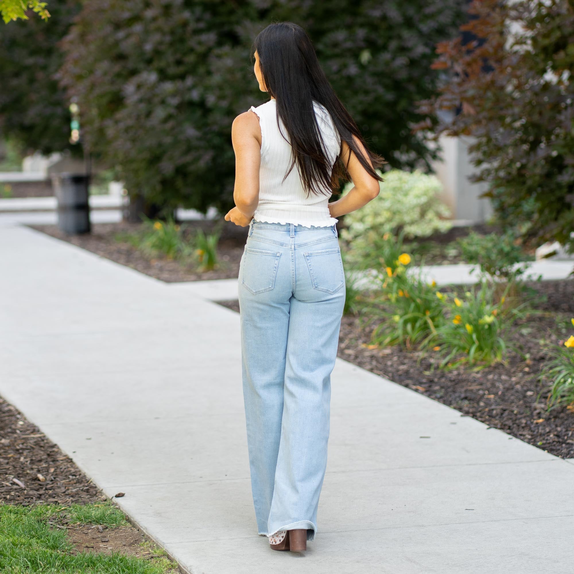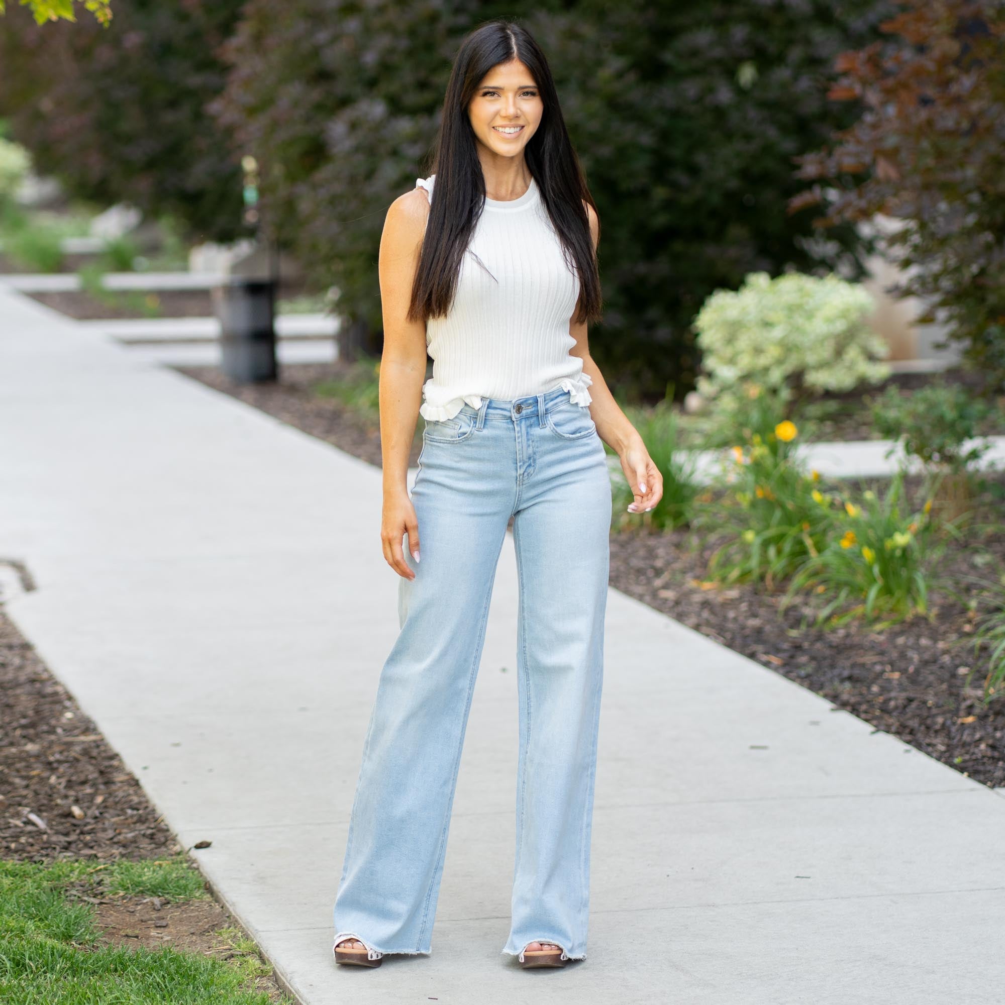 The Judy Raw Edge Wide Leg is your go-to for effortless cool with a polished twist. Designed with a flattering high rise and roomy wide leg silhouette, these jeans give you that breezy, elongating fit you’ll reach for again and again. Finished with a raw hem for just the right amount of edge, and made from comfort stretch denim that holds its shape and moves with you. Zip fly, button closure, and classic five-pocket style—this pair is ready to do it all.