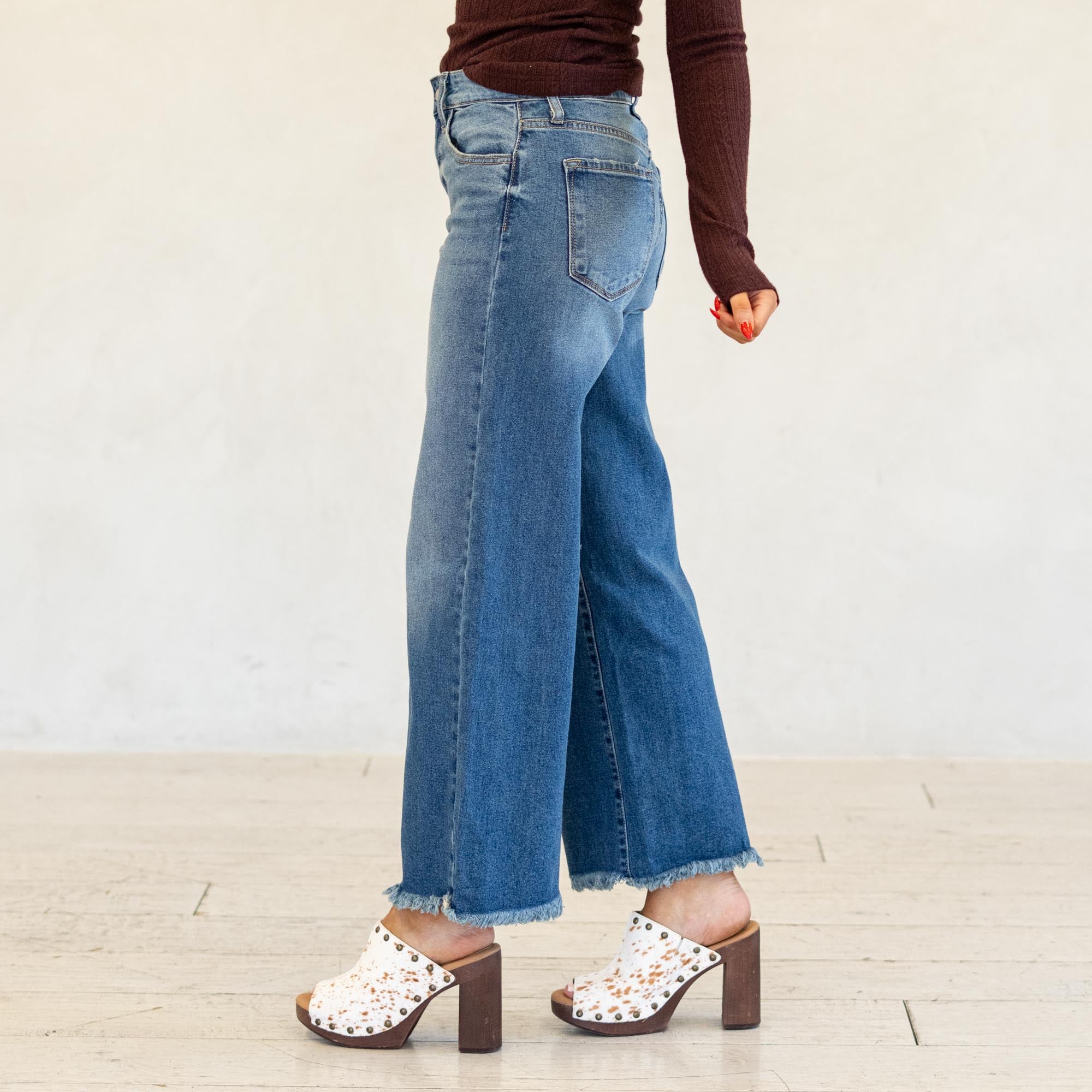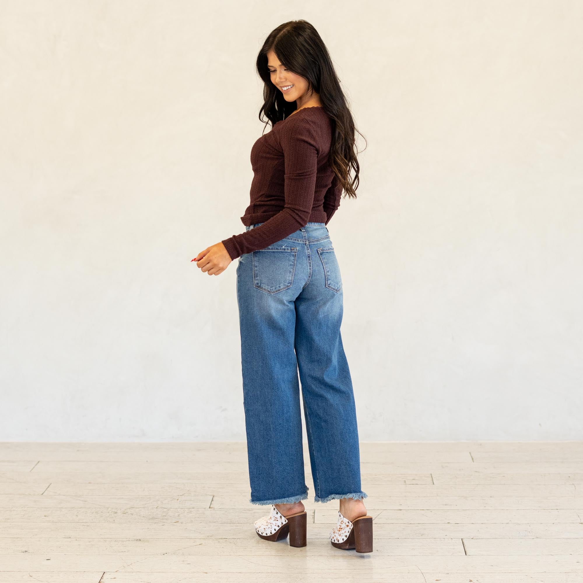 KanCan Aruli Essentials High Rise Cropped Wide Leg Jeans Medium Blue Wash