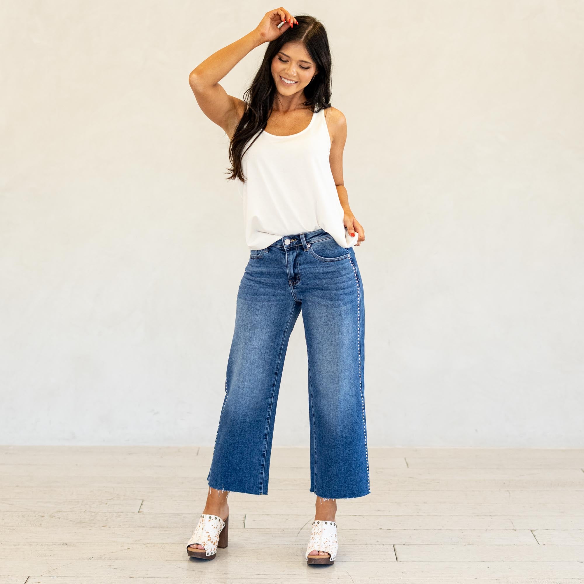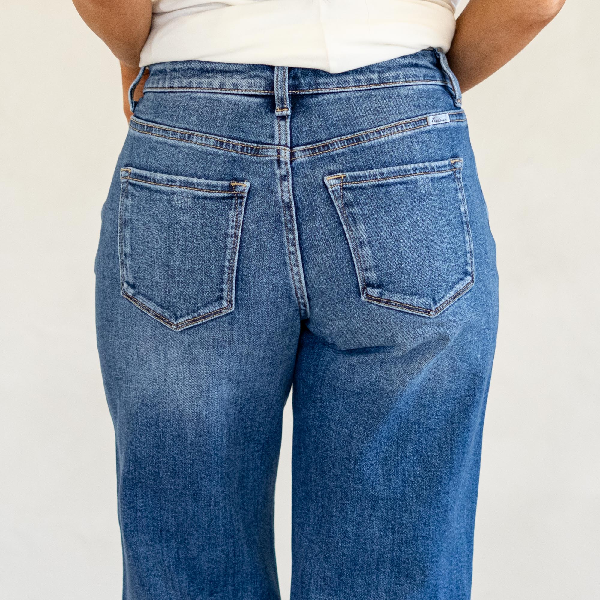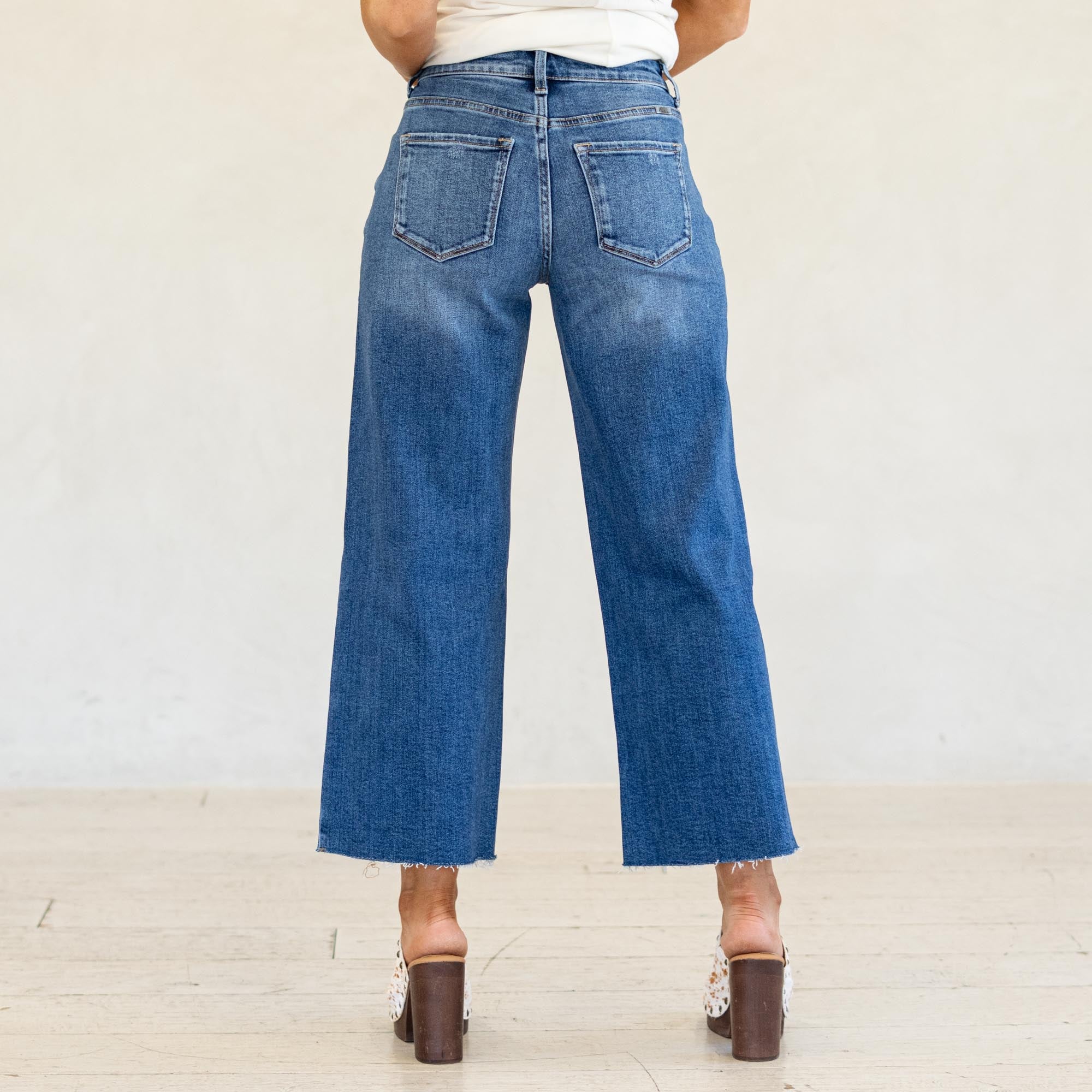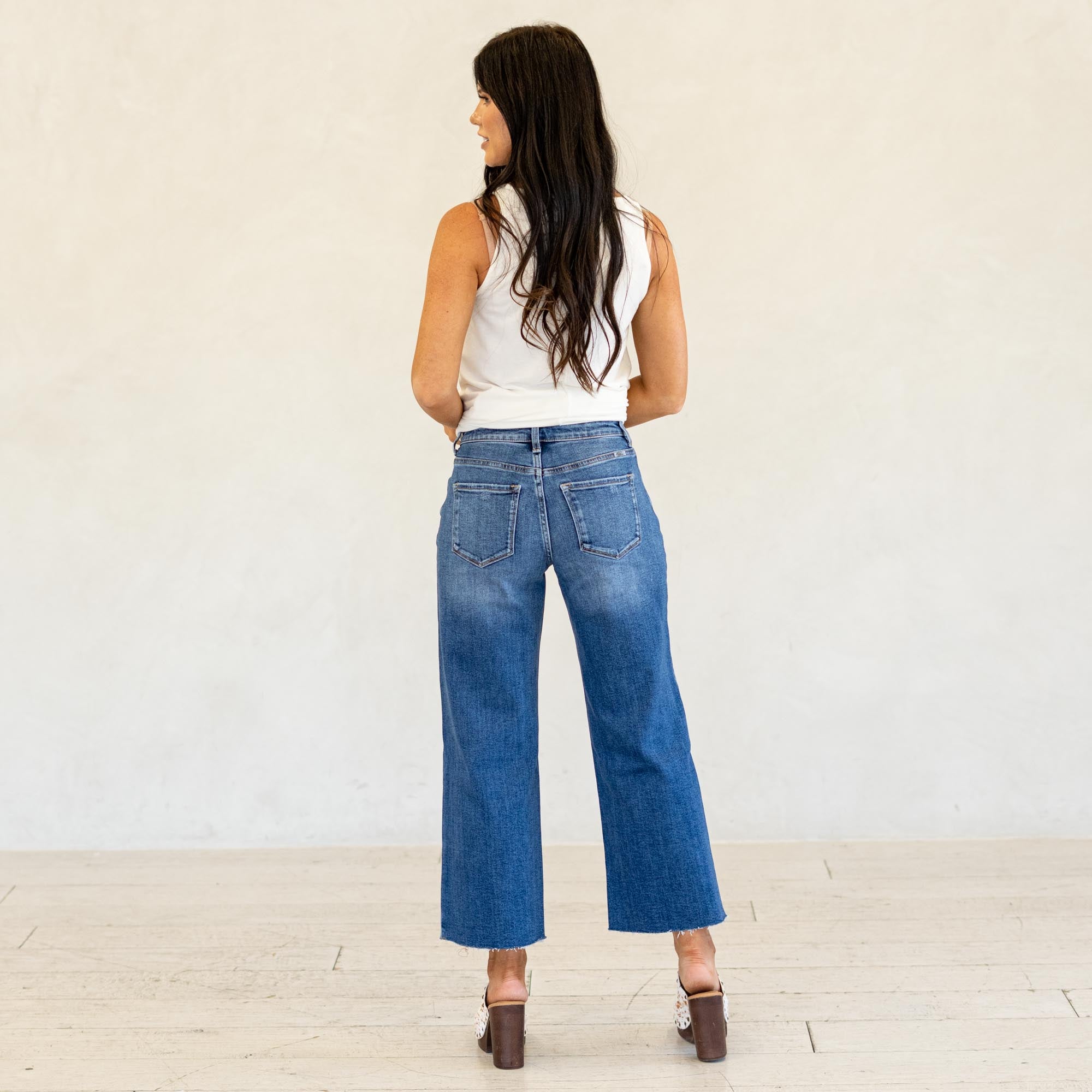 KanCan Mailene High Rise Crop Wide Leg Jean Medium Blue