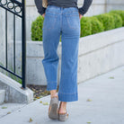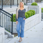 VERVET Fiorella High Rise Elastic Waistband Wide Leg Jeans Medium Blue