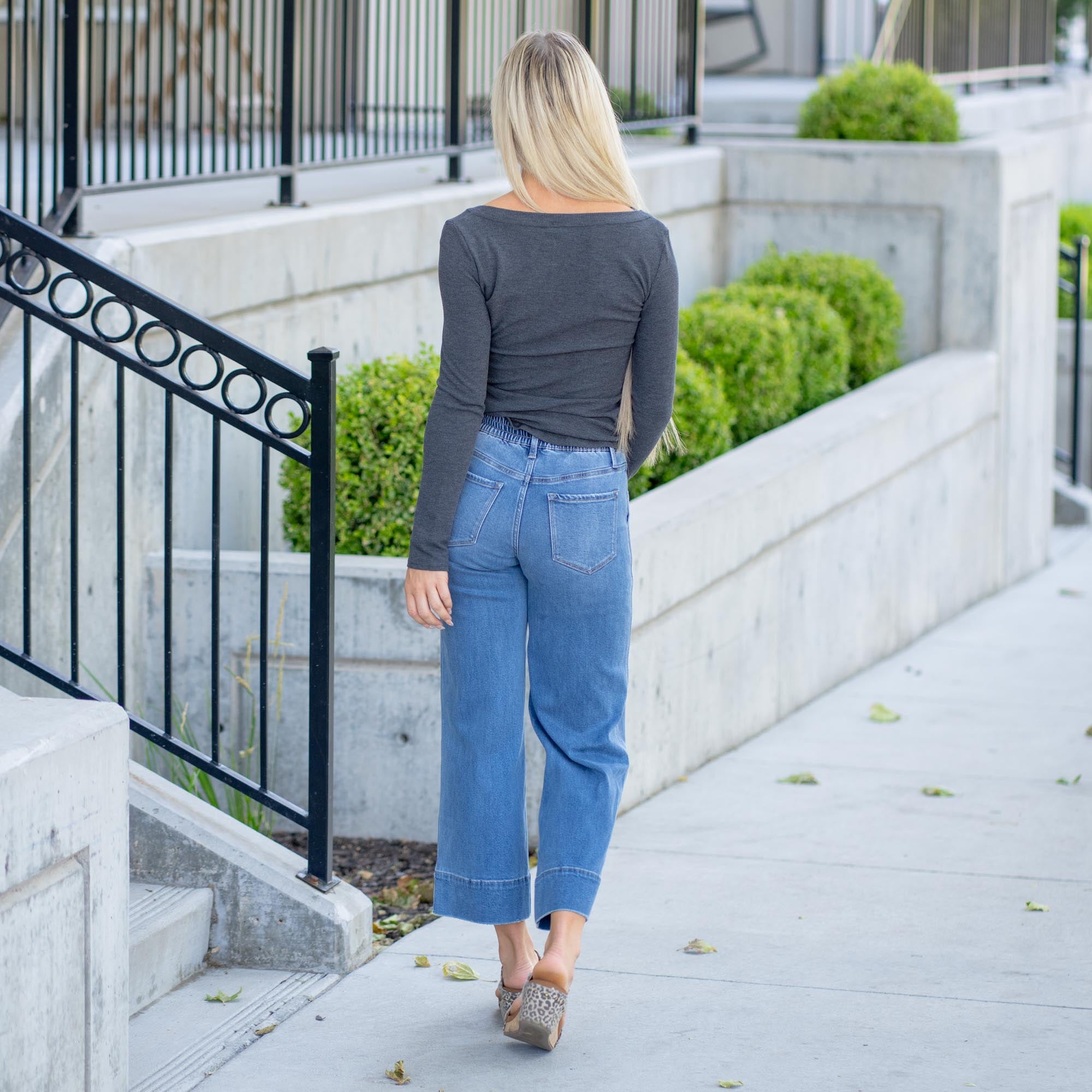 Step into effortless style with the Fiorella High Rise Wide Leg Jeans. Designed with a flattering high-rise fit and an easy pull-on elastic waistband, these jeans give you the comfort of loungewear with the polish of denim.