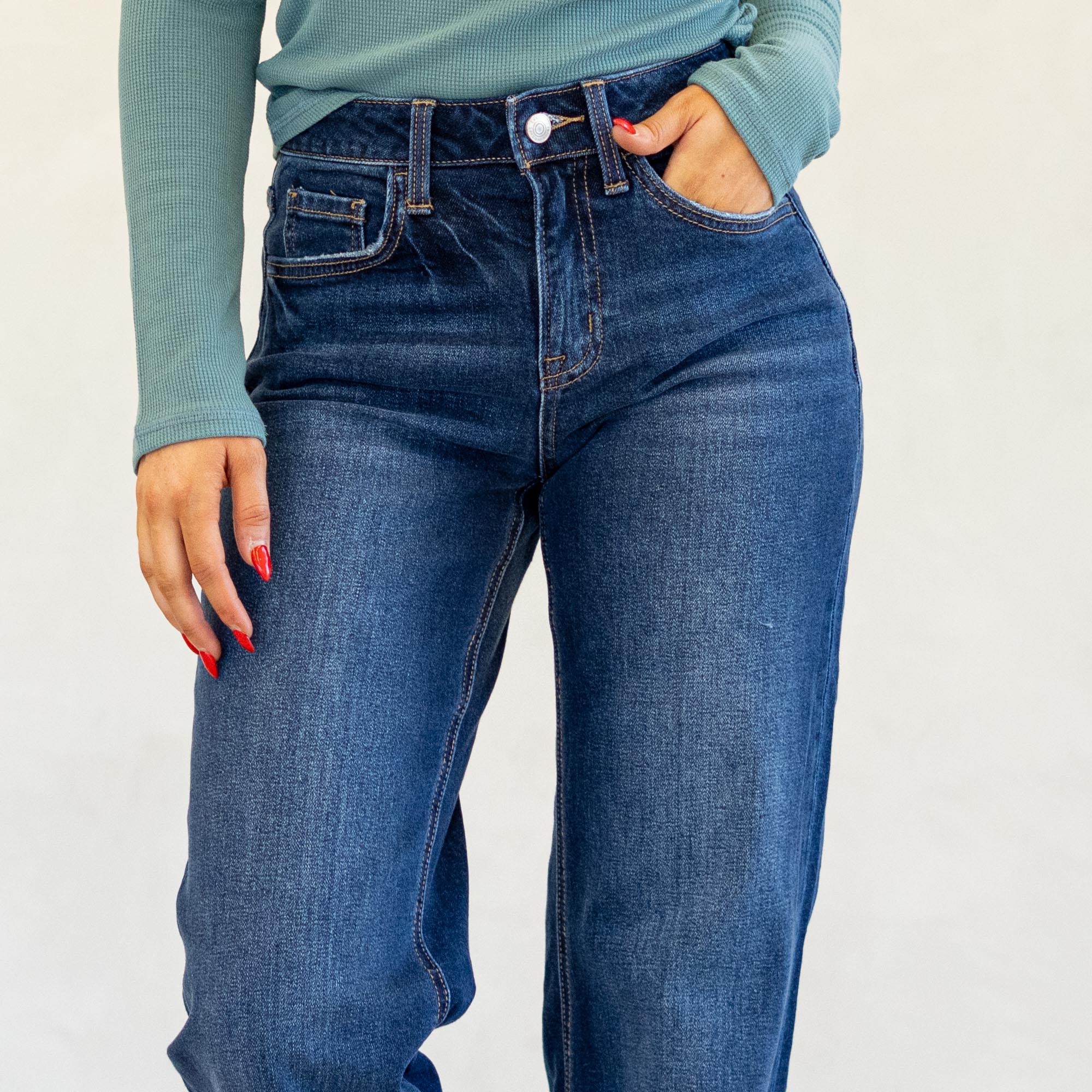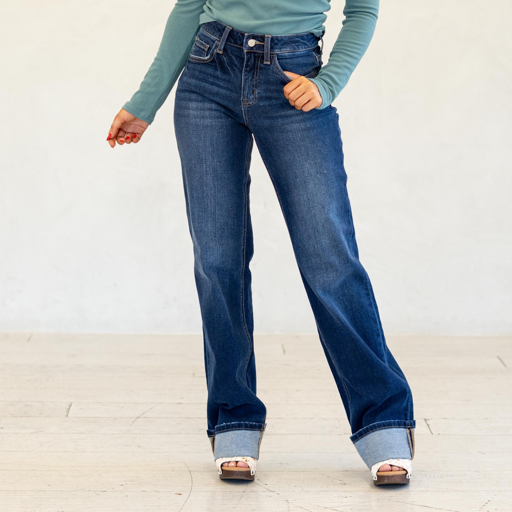 Lovervet Midnight Ease High Rise Cuffed Wide Leg Jeans Dark Blue Wash