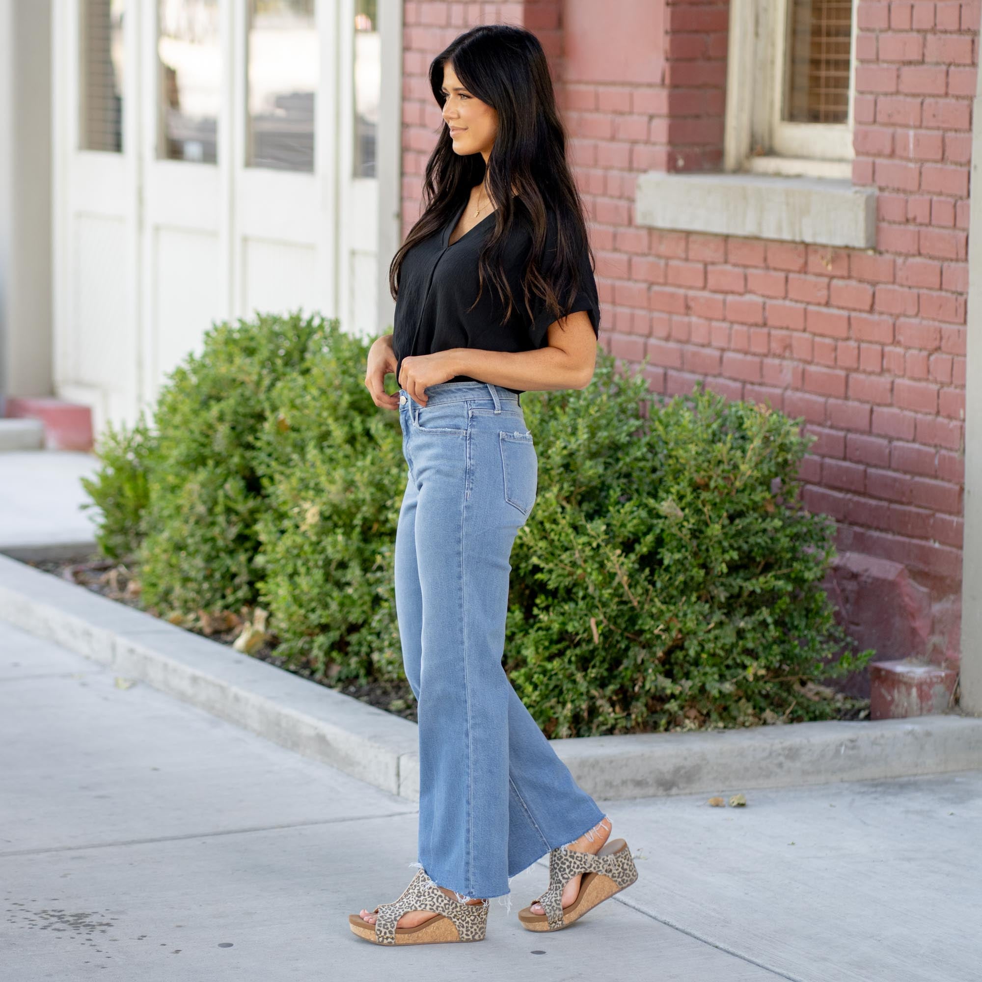 VERVET Sharpest High Rise Raw Hem Ankle Slim Wide Leg Medium Blue