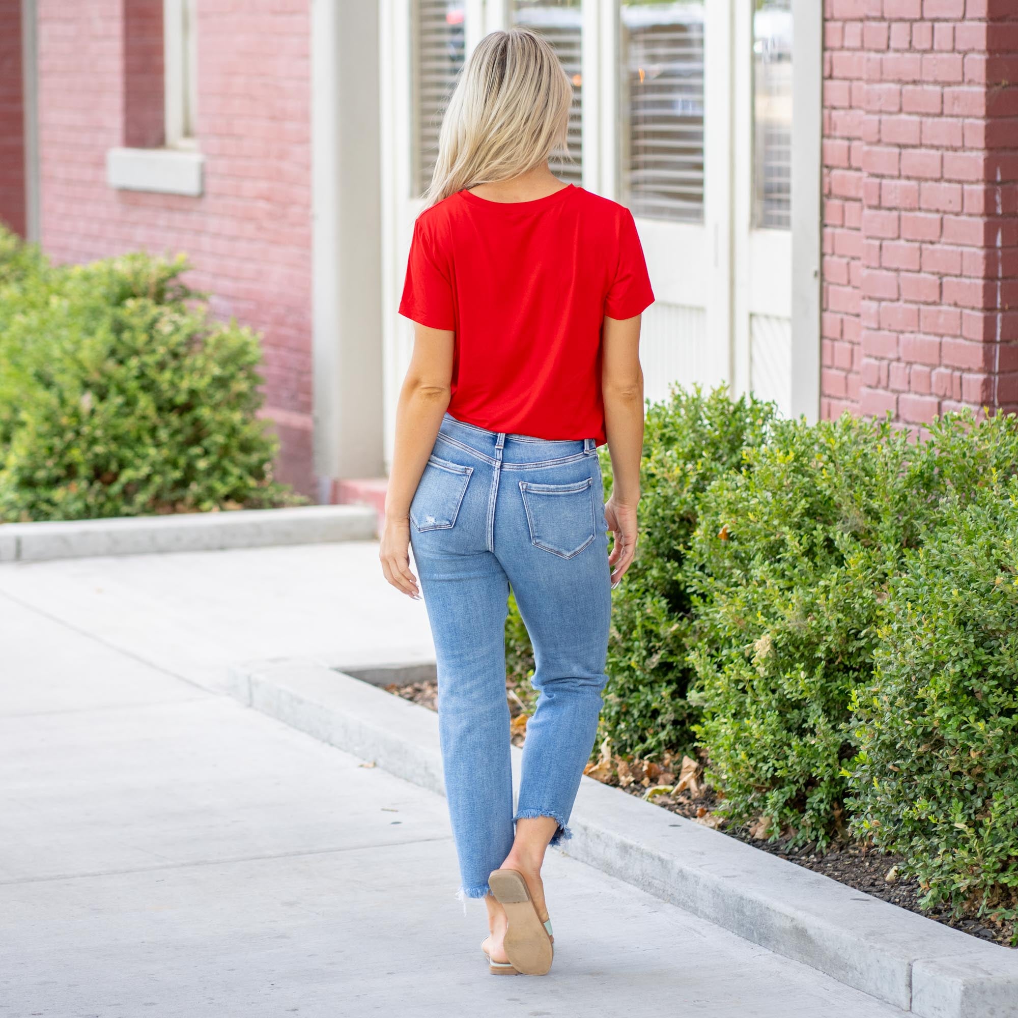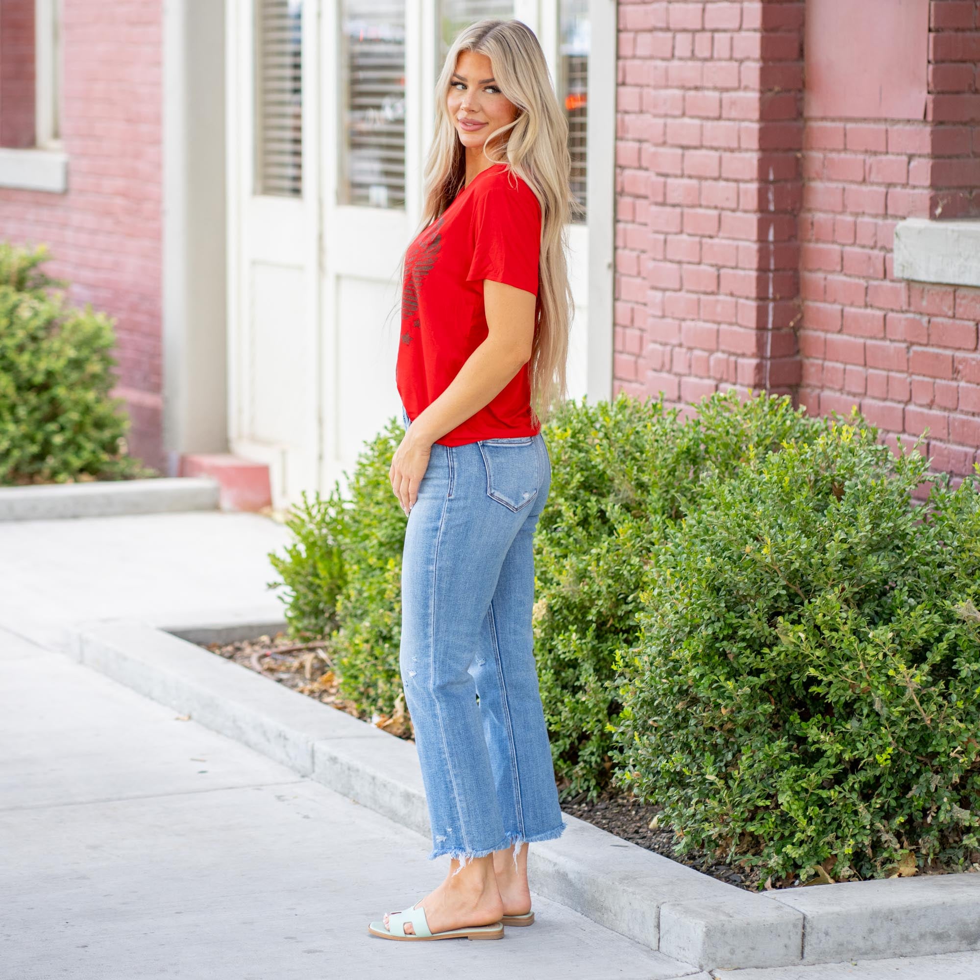 Fresh and versatile, the Vital Horizon High Rise Crop Straight Jeans bring modern edge to a timeless fit. Crafted from comfort stretch denim, they sit high on the waist for a flattering silhouette and fall into a classic straight leg that pairs with everything from sneakers to strappy heels.