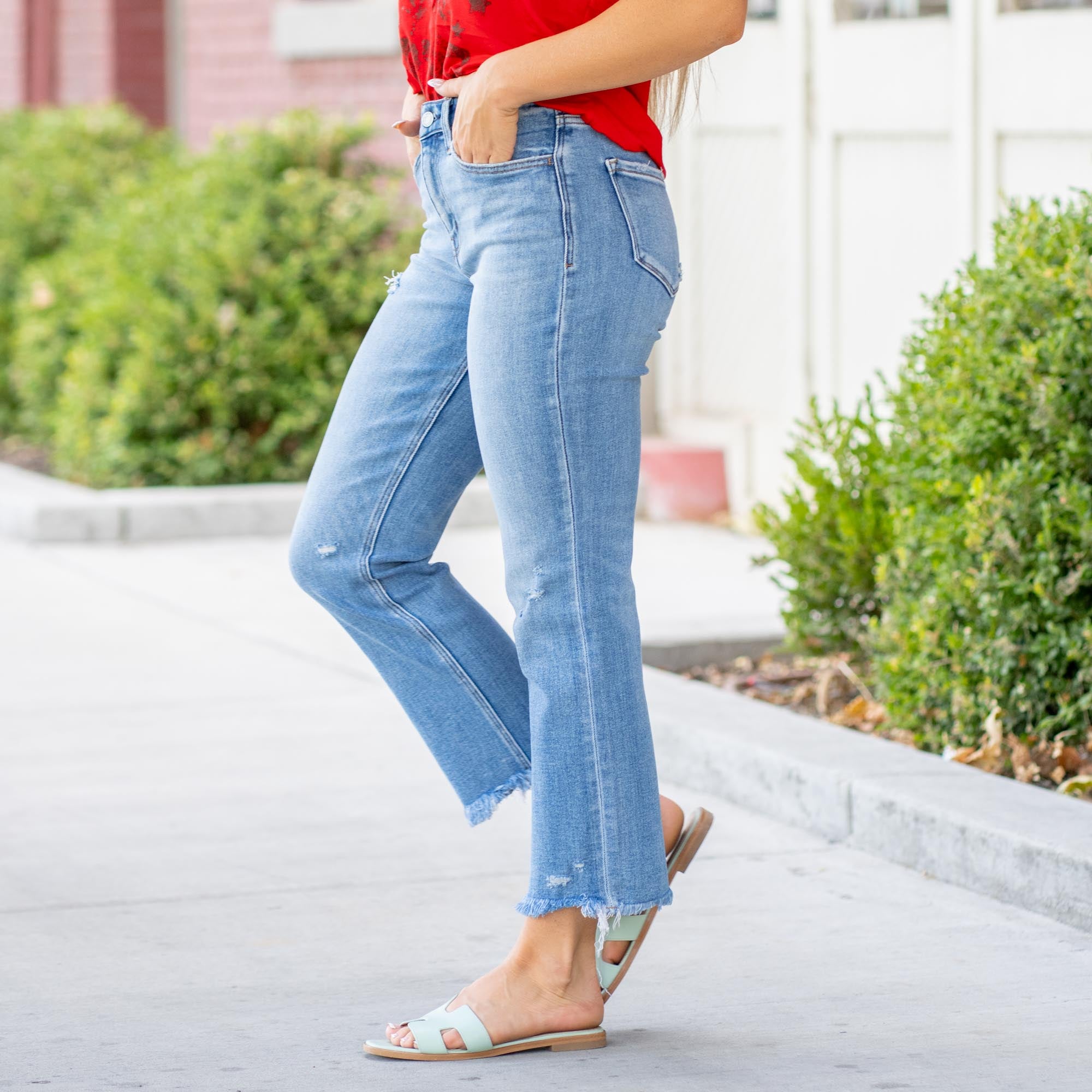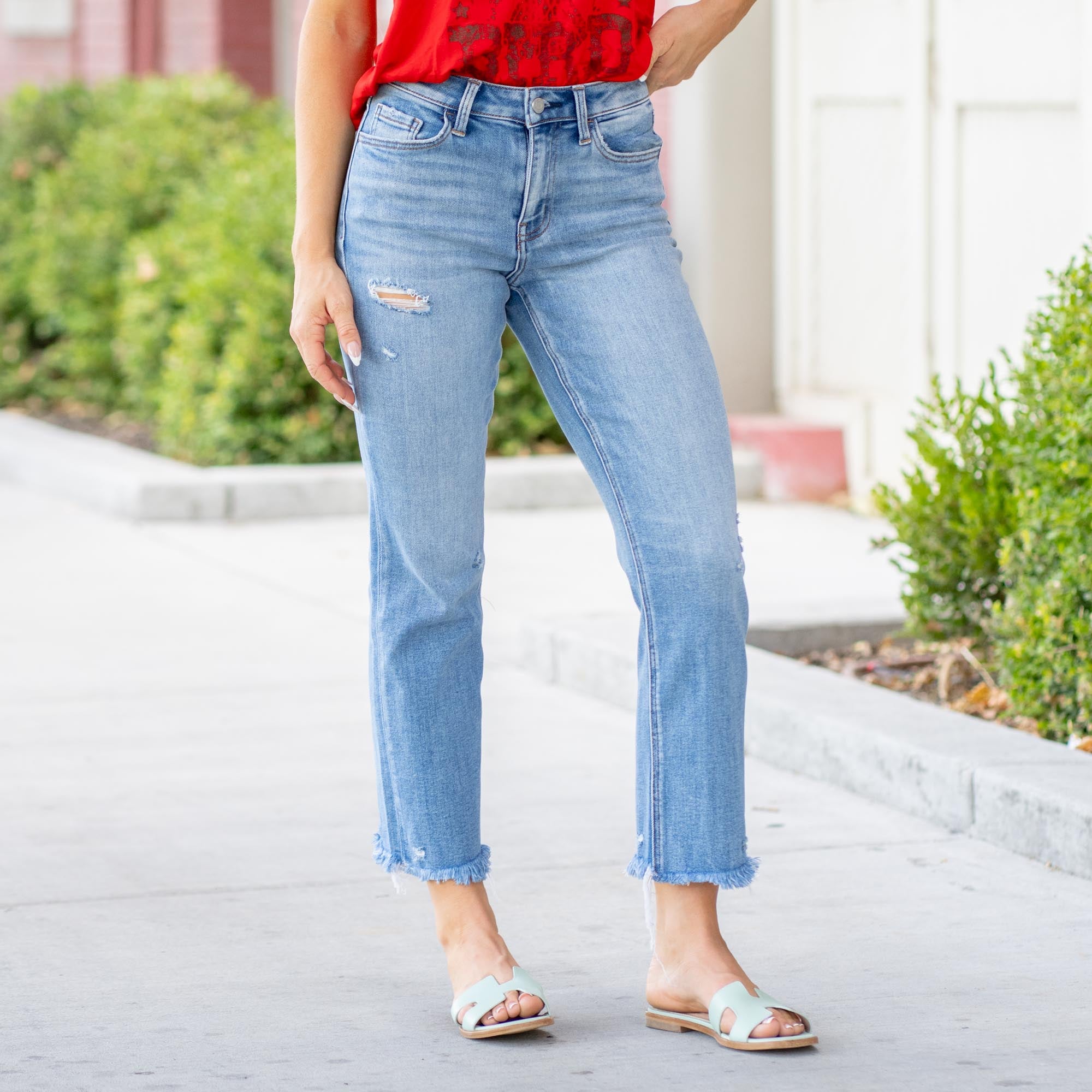 Distressed details and a frayed hem add a touch of lived-in character, while the cropped length makes them perfect for showcasing your favorite footwear. With their easy fit and stylish medium wash, the Vital Horizon is designed to be a go-to denim essential all season long.