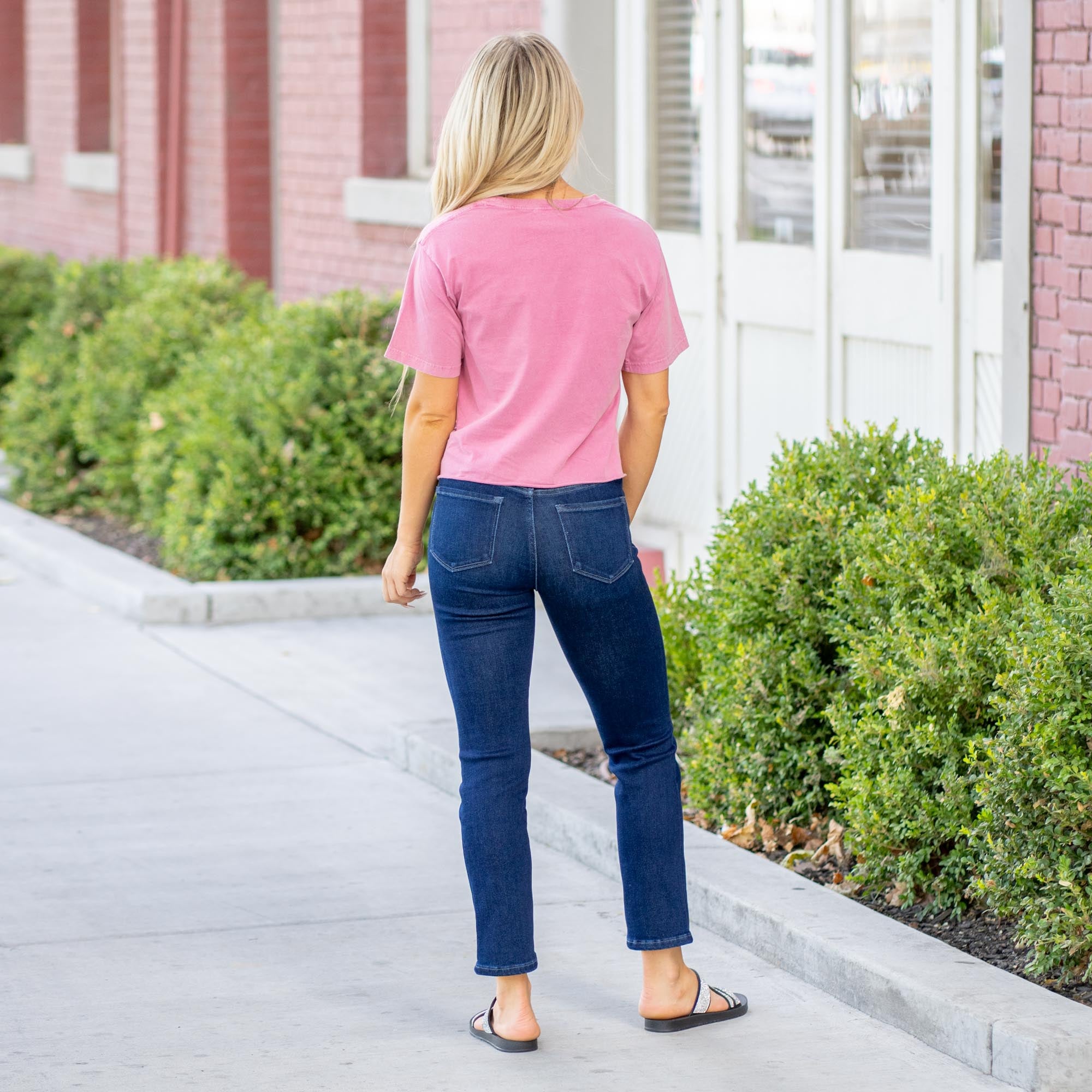 The slim straight silhouette gives a timeless shape that tapers just right, while the ankle-length cut makes them ideal for pairing with sneakers, boots, or sandals. Finished with a clean hem for a polished touch, the Glorious Joy is a versatile essential that moves seamlessly from casual days to elevated nights.