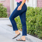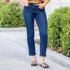 VERVET Glorious Joy Mid Rise Slim Straight Ankle Length Jeans Dark Blue Wash