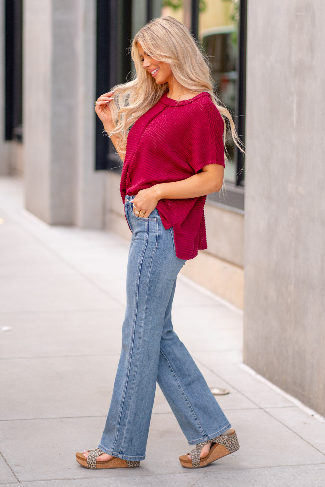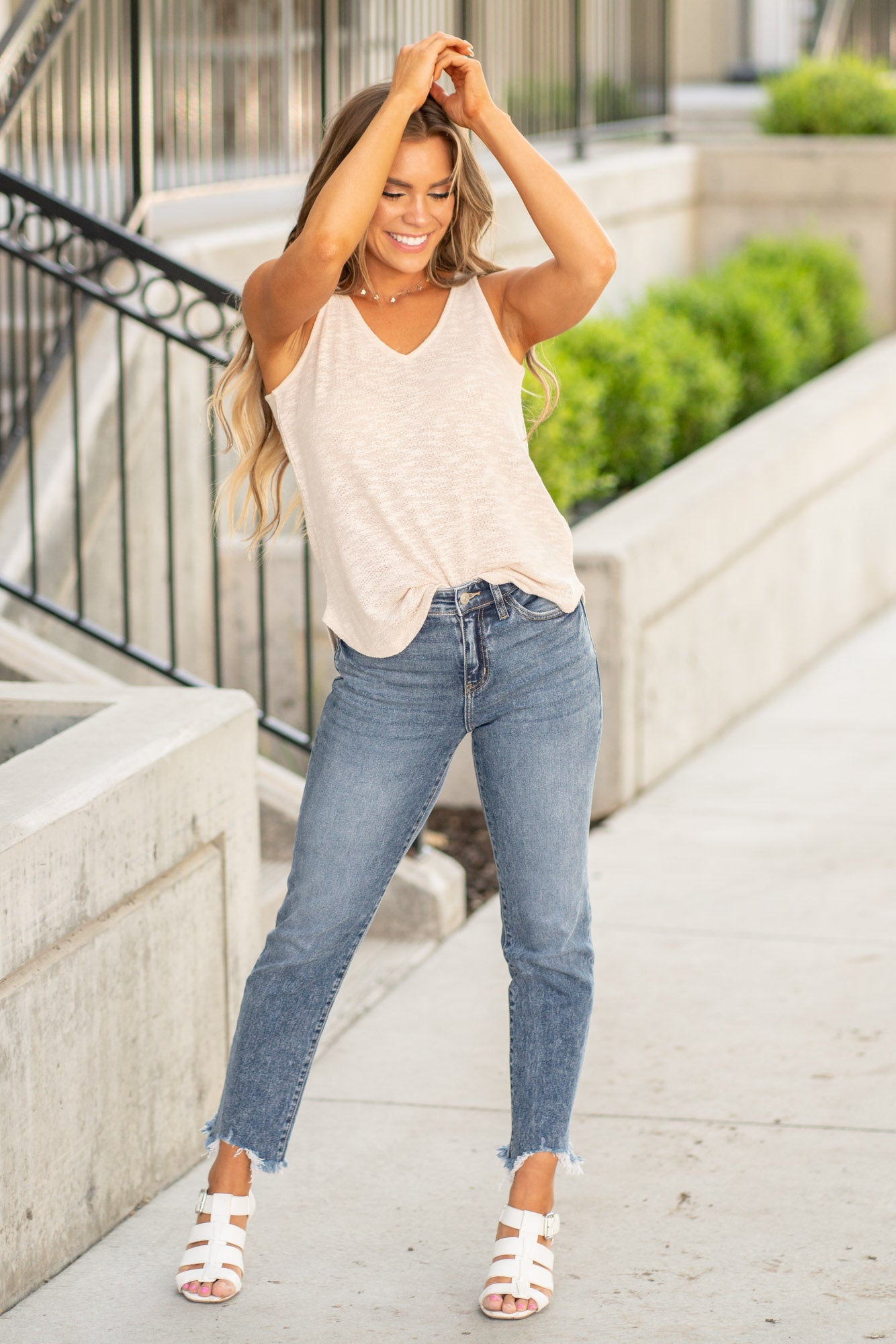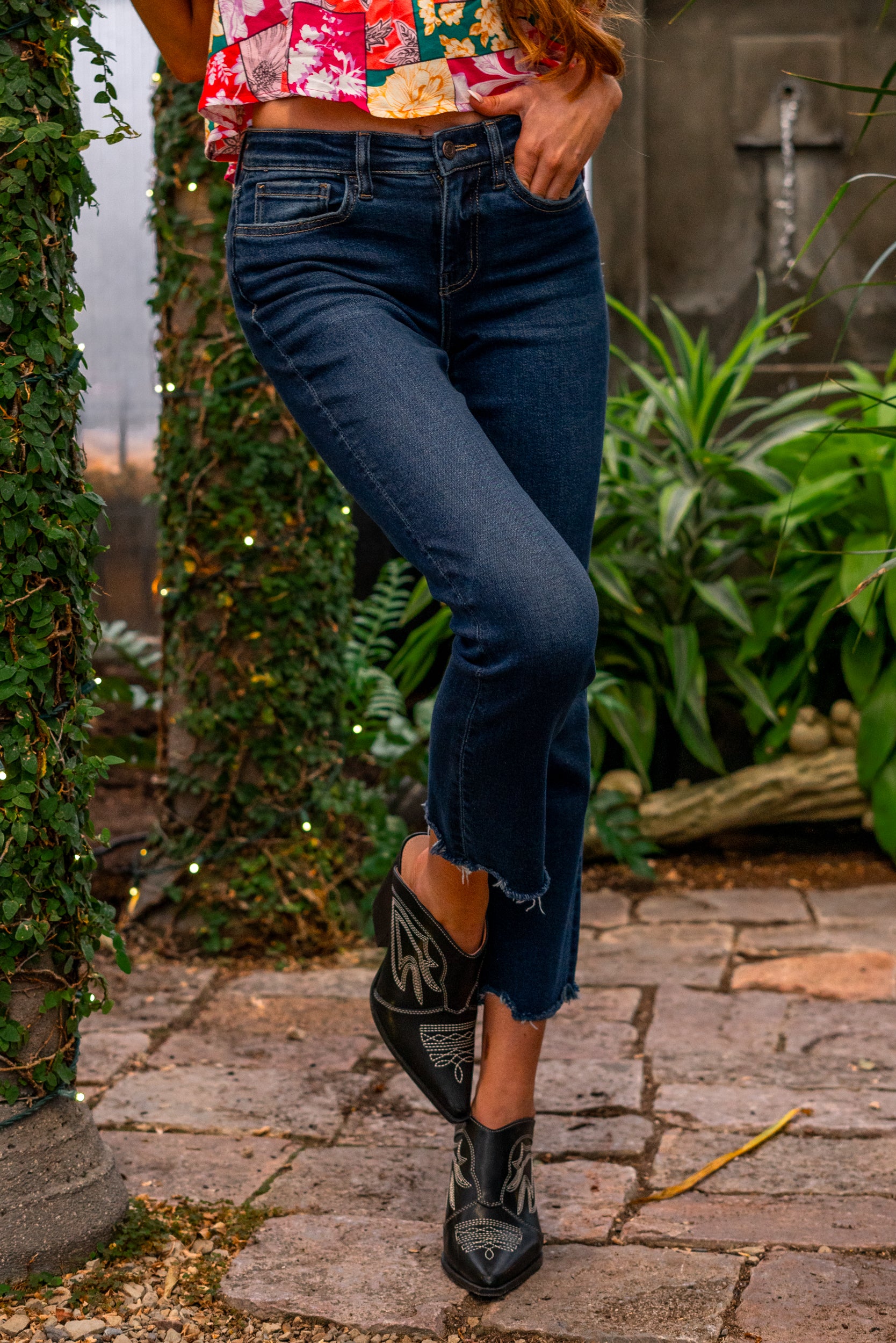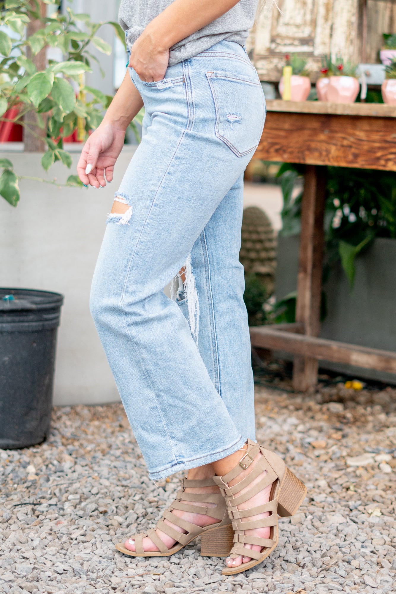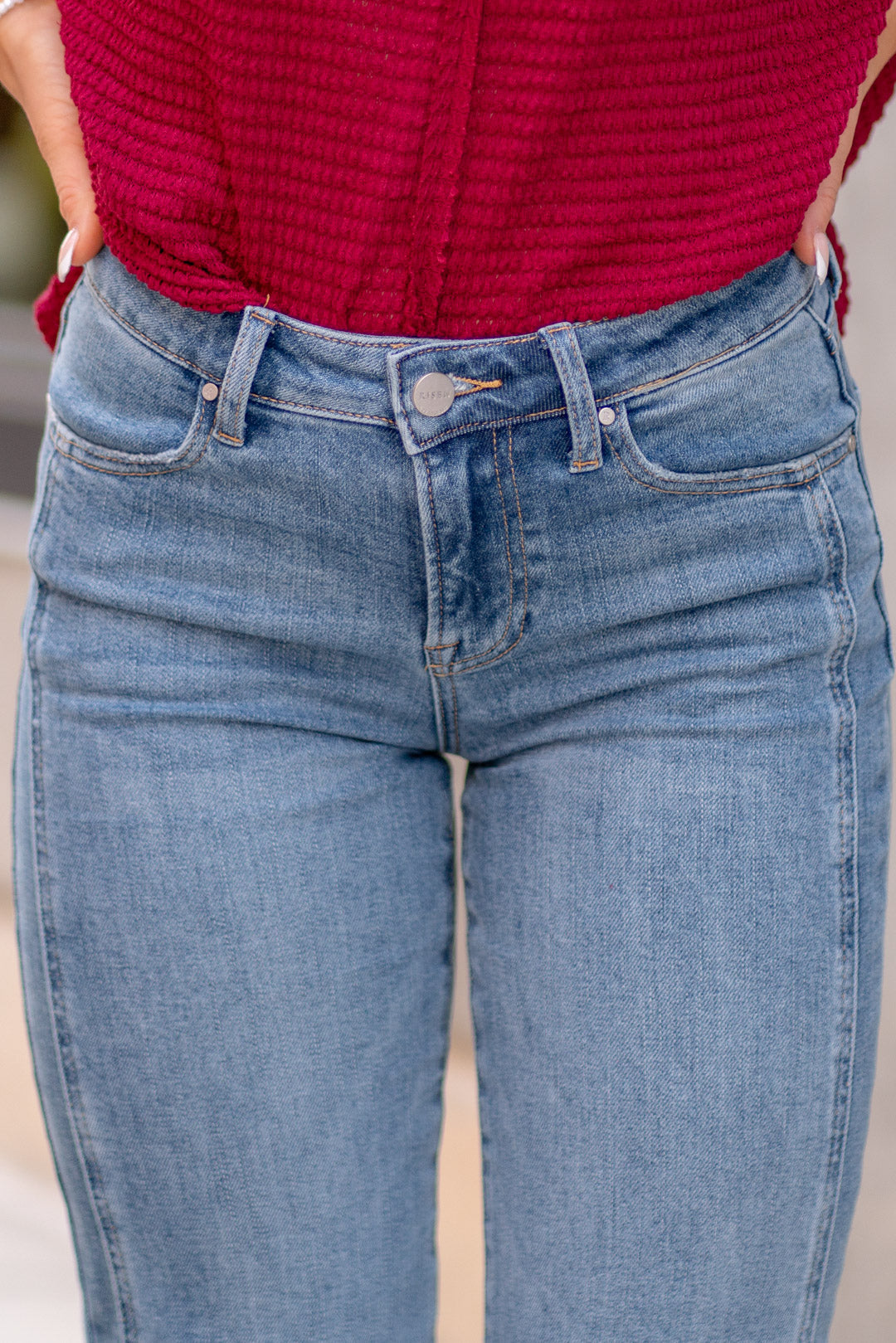 Sunny Sky Folded Front Hem Mid Rise Straight