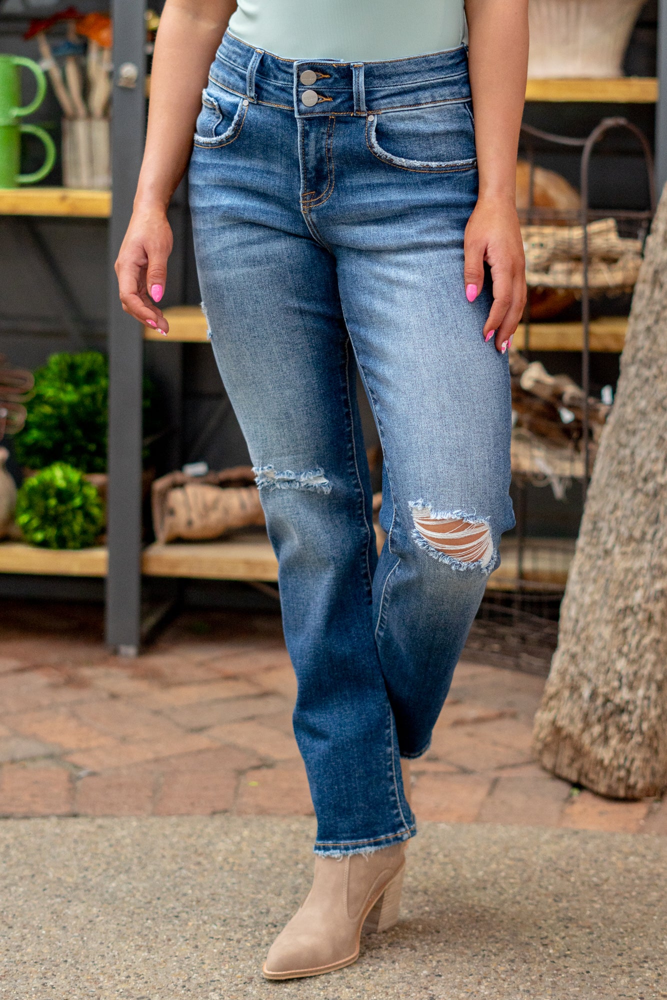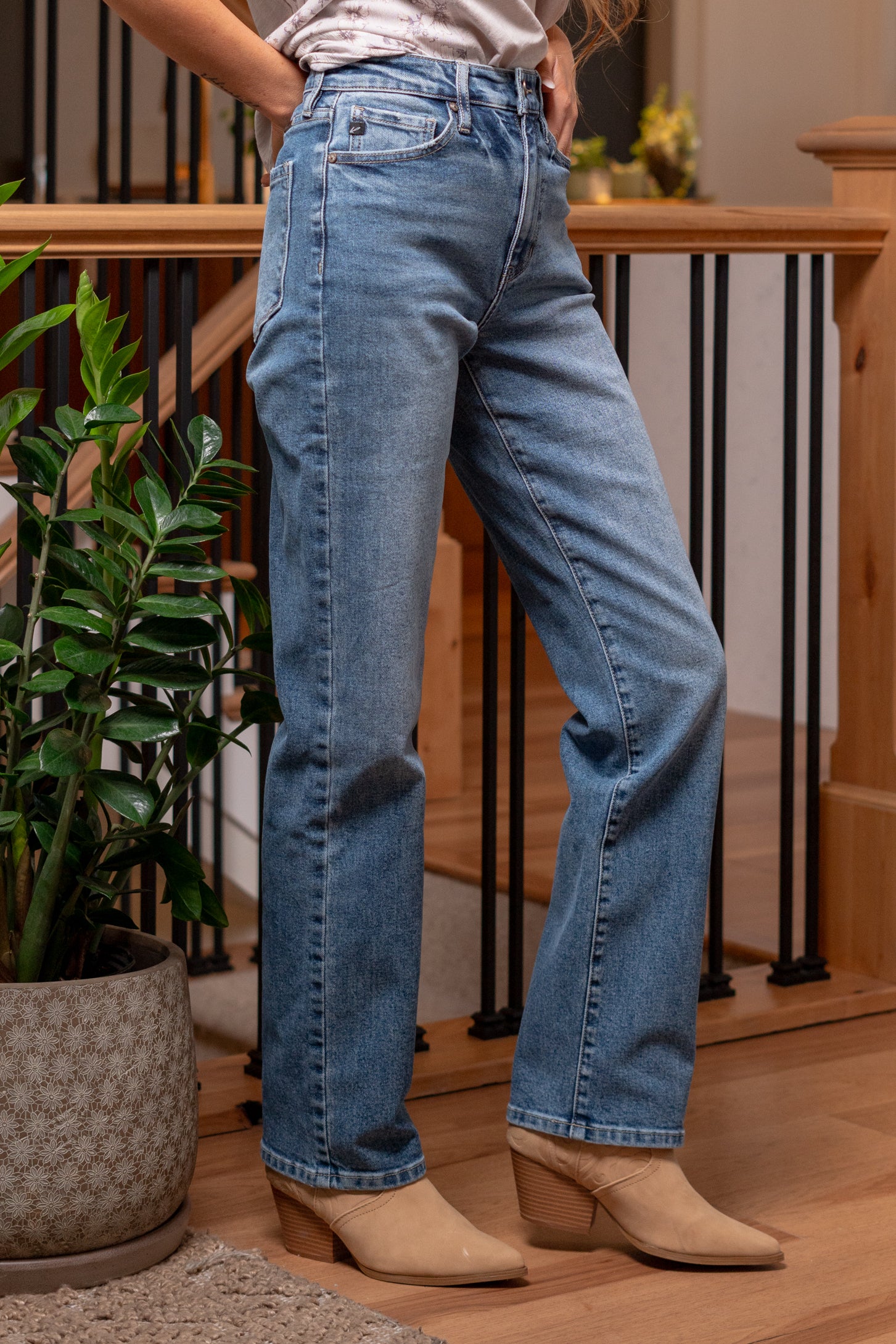 Best Day Button Fly High Rise Straight Leg Regular & Plus Sizes
