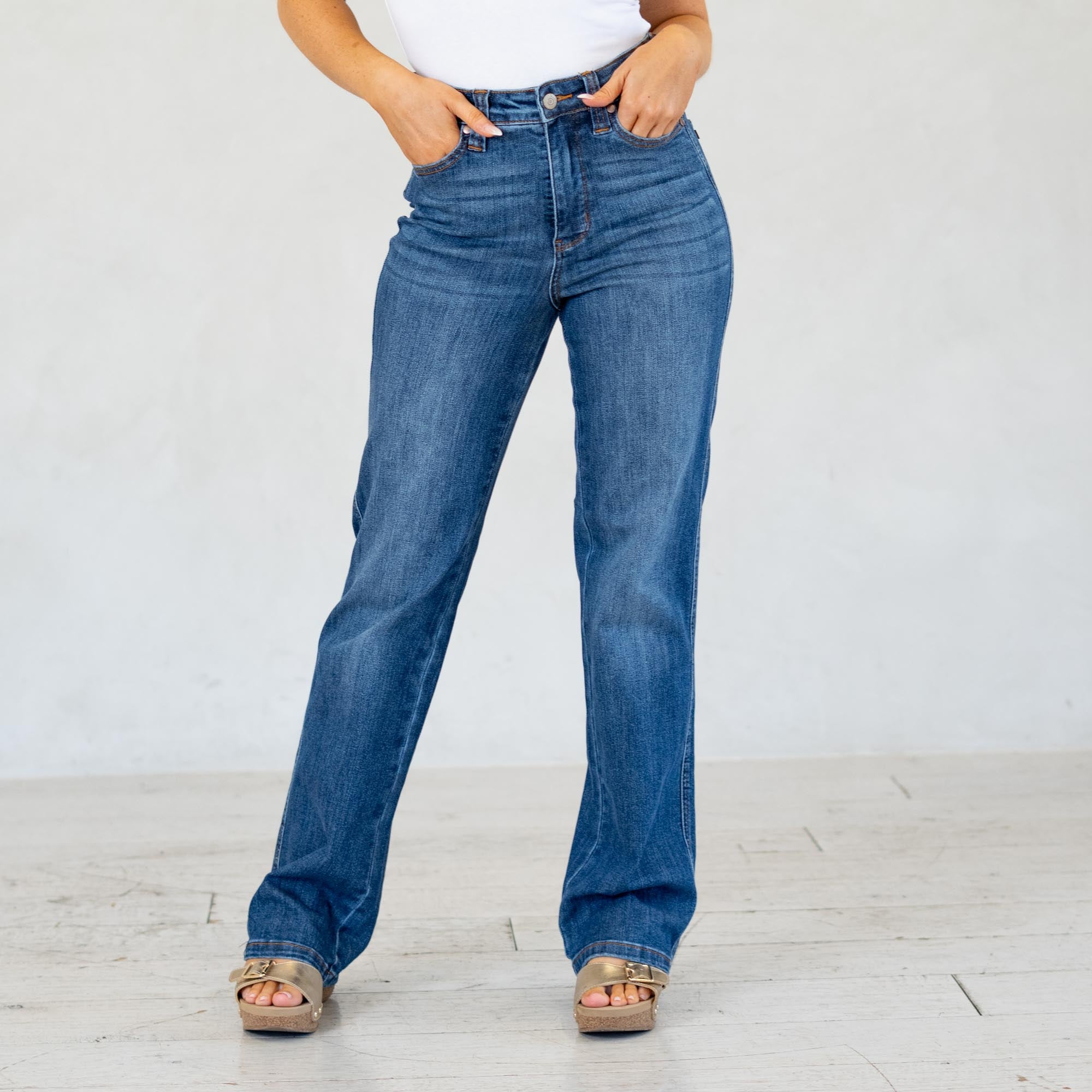 The True Form High Waist Straight Jean is designed to smooth, support, and flatter in all the right places. Featuring Judy Blue’s built-in tummy control panel and a rich dark blue wash, this pair offers a sleek, polished look you can dress up or down. The straight leg silhouette creates a timeless fit that never goes out of style. Finished with Judy Blue’s signature stretch, they’re comfortable enough for all-day wear while keeping their shape beautifully.