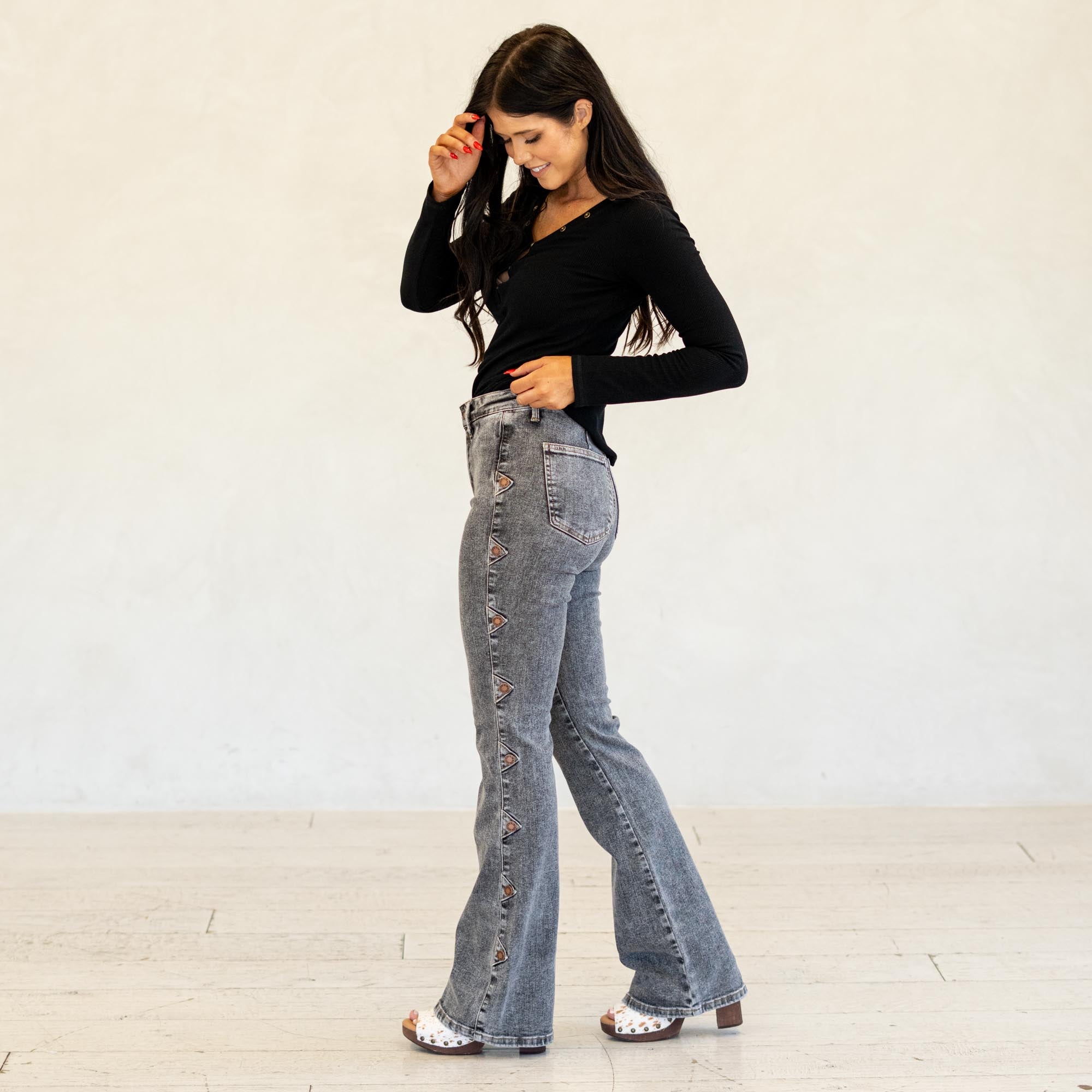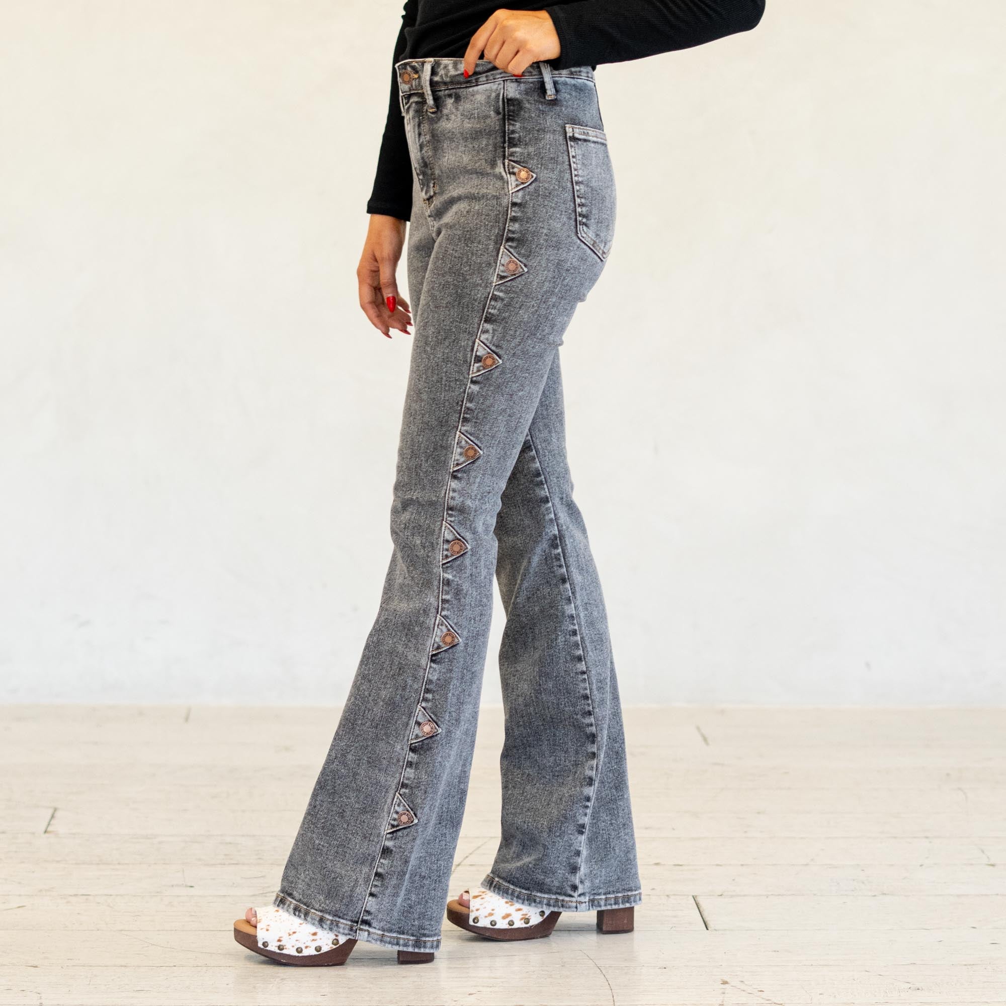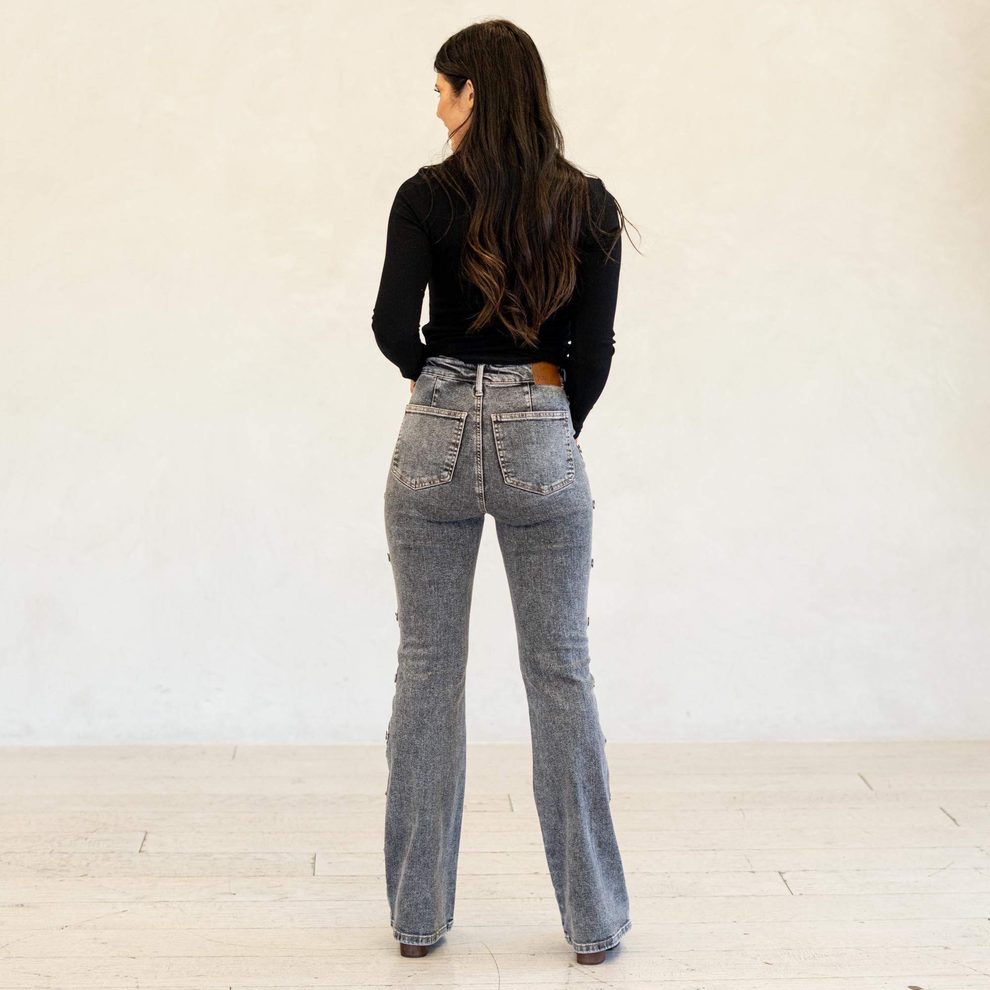 Meet your new go-to grey denim with a western-inspired twist. These high-waist bootcut Judy Blues feature eye-catching side seam detailing and a unique coin pocket that adds just the right amount of edge. Crafted with Judy Blue’s signature stretch, they hug in all the right places while keeping you comfortable all day long. Style them with boots or sneakers for an effortlessly cool, wear-anywhere look.