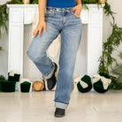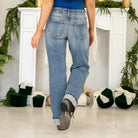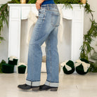 The Irine Low-Slung Baggy Straight brings an effortlessly cool update to a classic straight-leg silhouette. Designed in a medium-dark wash with soft whiskering at the front, this non-distressed style keeps the look clean and versatile. Finished with a trendy 2.5" cuff, these jeans are meant to sit low on the hips for a relaxed, baggy vibe—size down for a more fitted feel. Complete with a single-button closure, zip fly, and classic five-pocket styling, they pair perfectly with everything from sneakers to boots.