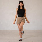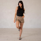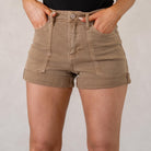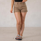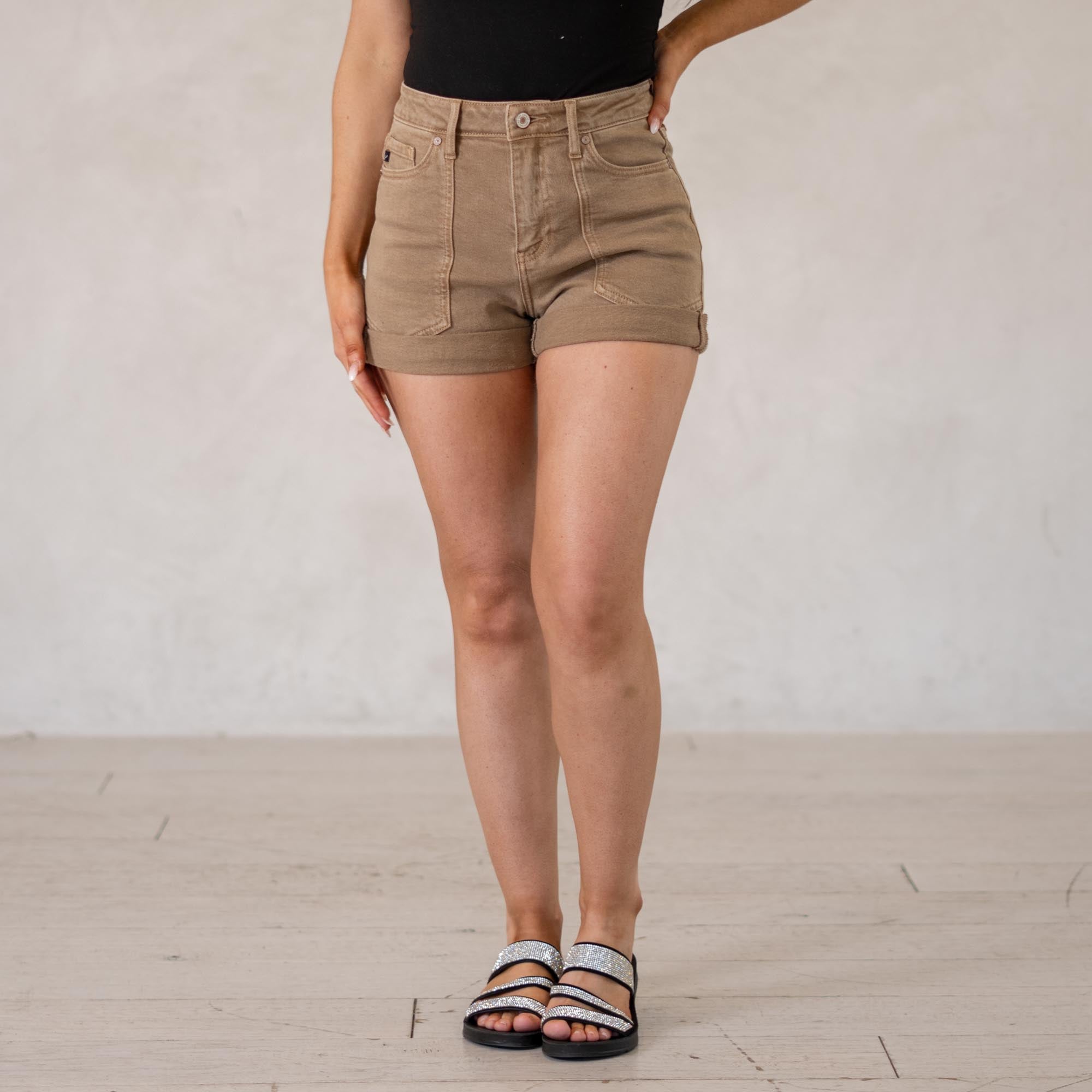 Available in versatile mocha and classic white, this pair features soft comfort stretch denim that moves with you while holding its shape. Cargo-inspired pockets add a trendy, functional detail that sets these shorts apart from your everyday denim.