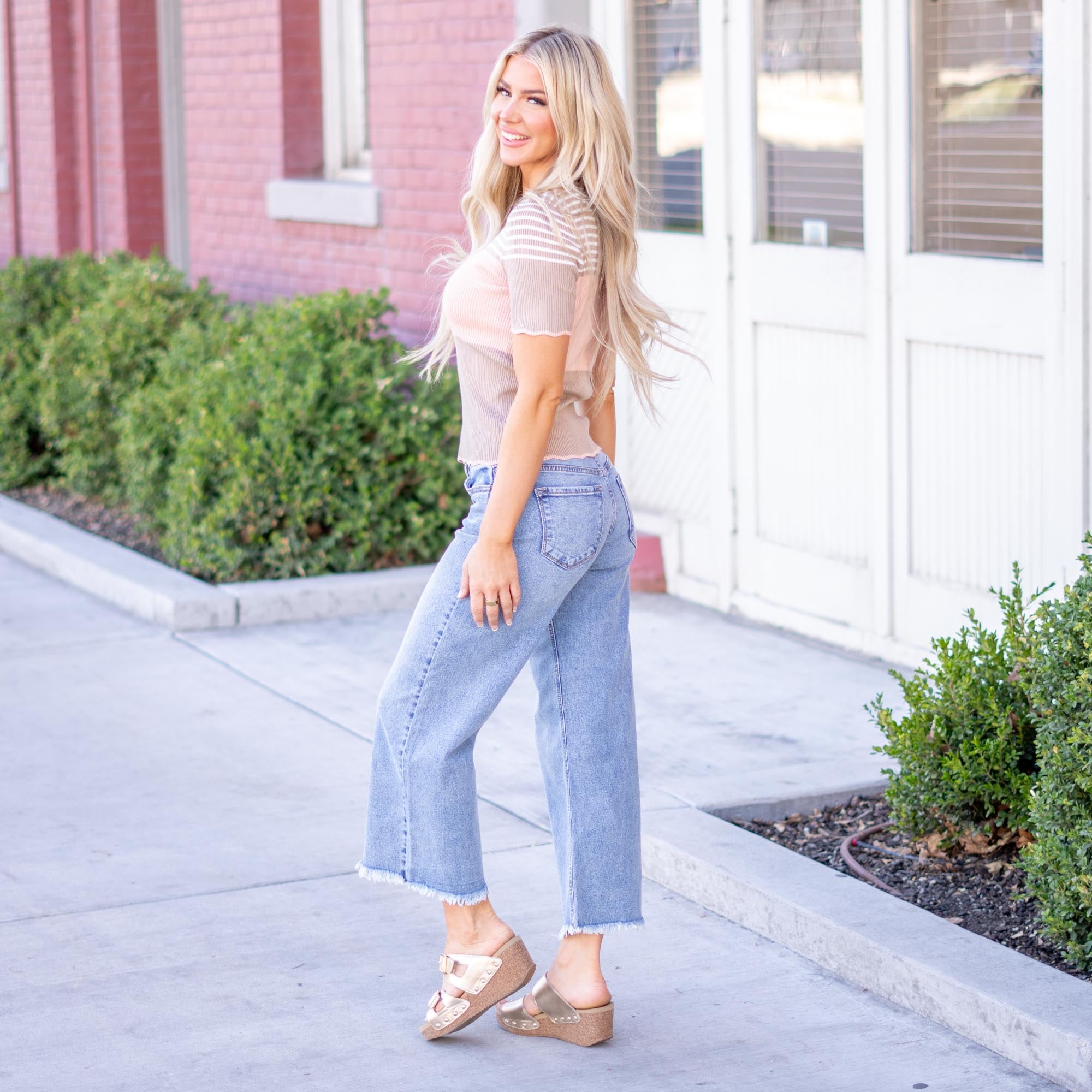 KanCan Mal Essentials Mid Rise Crop Wide Jeans – Comfort Stretch Denim