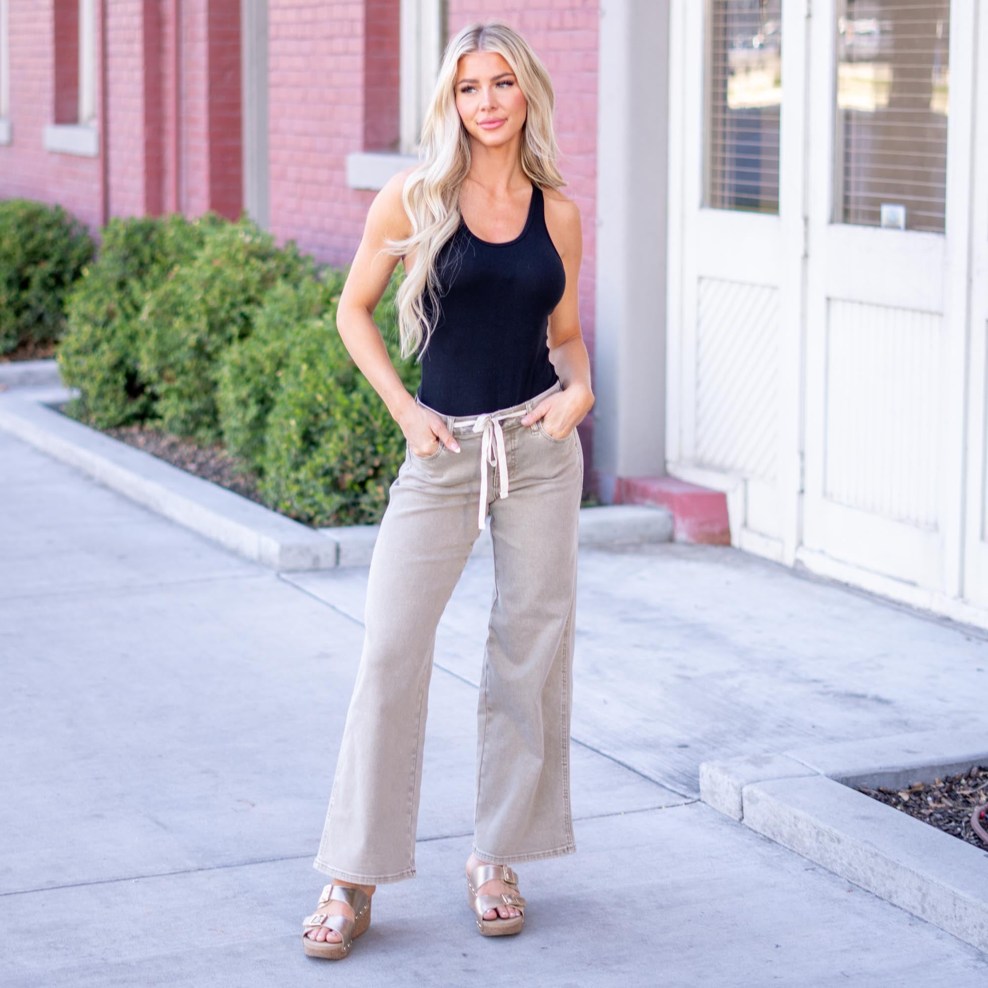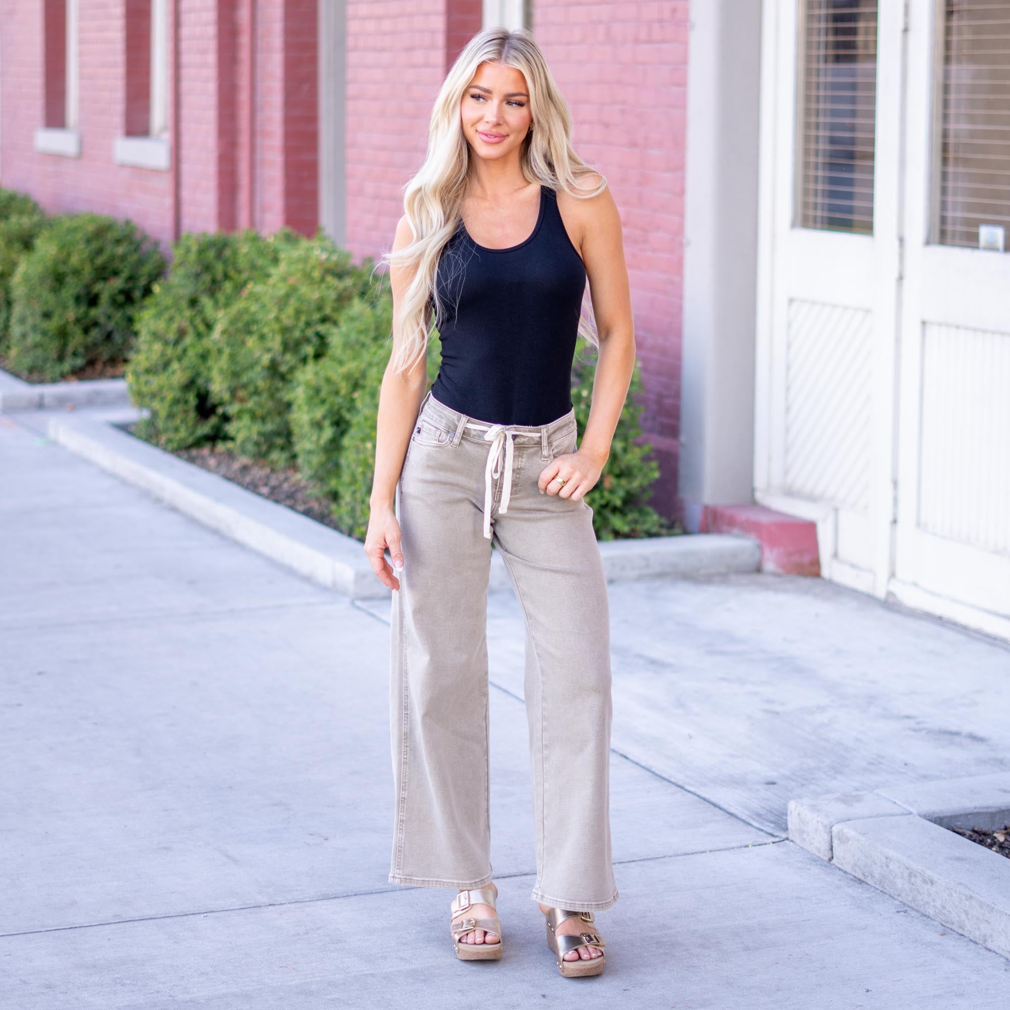 KanCan Shera Mid Rise Ankle Wide Ecru