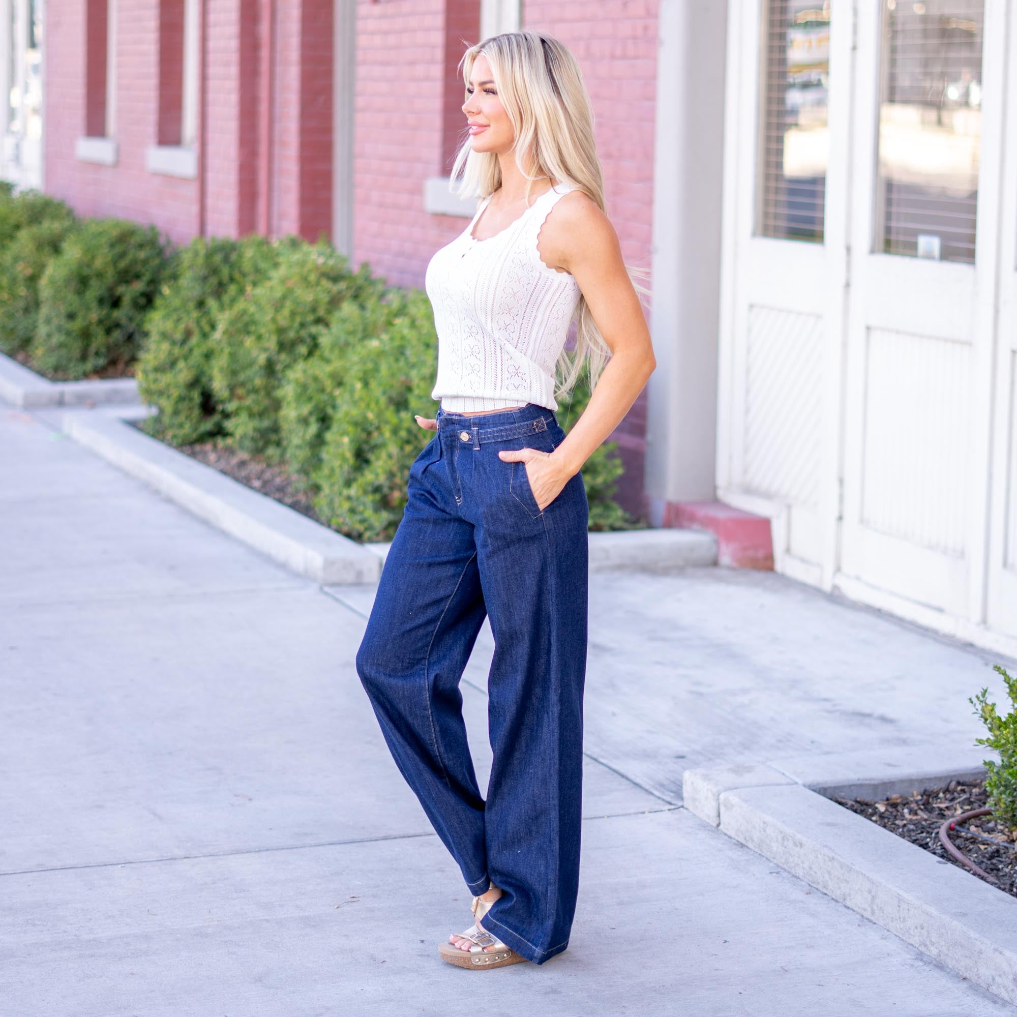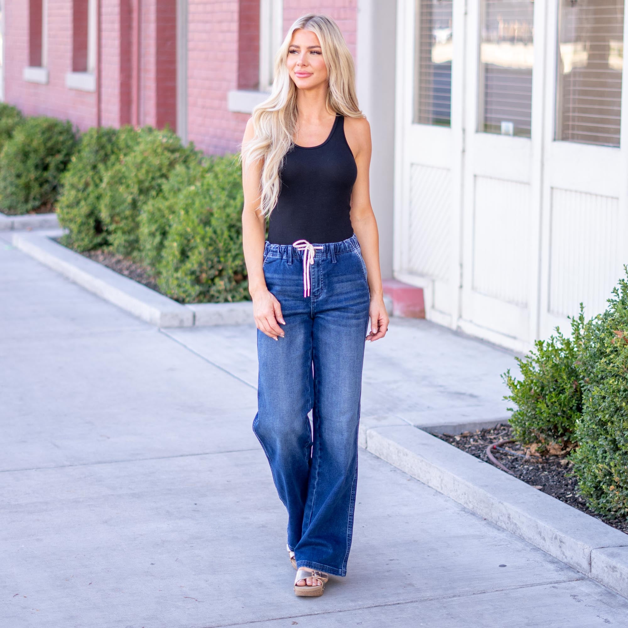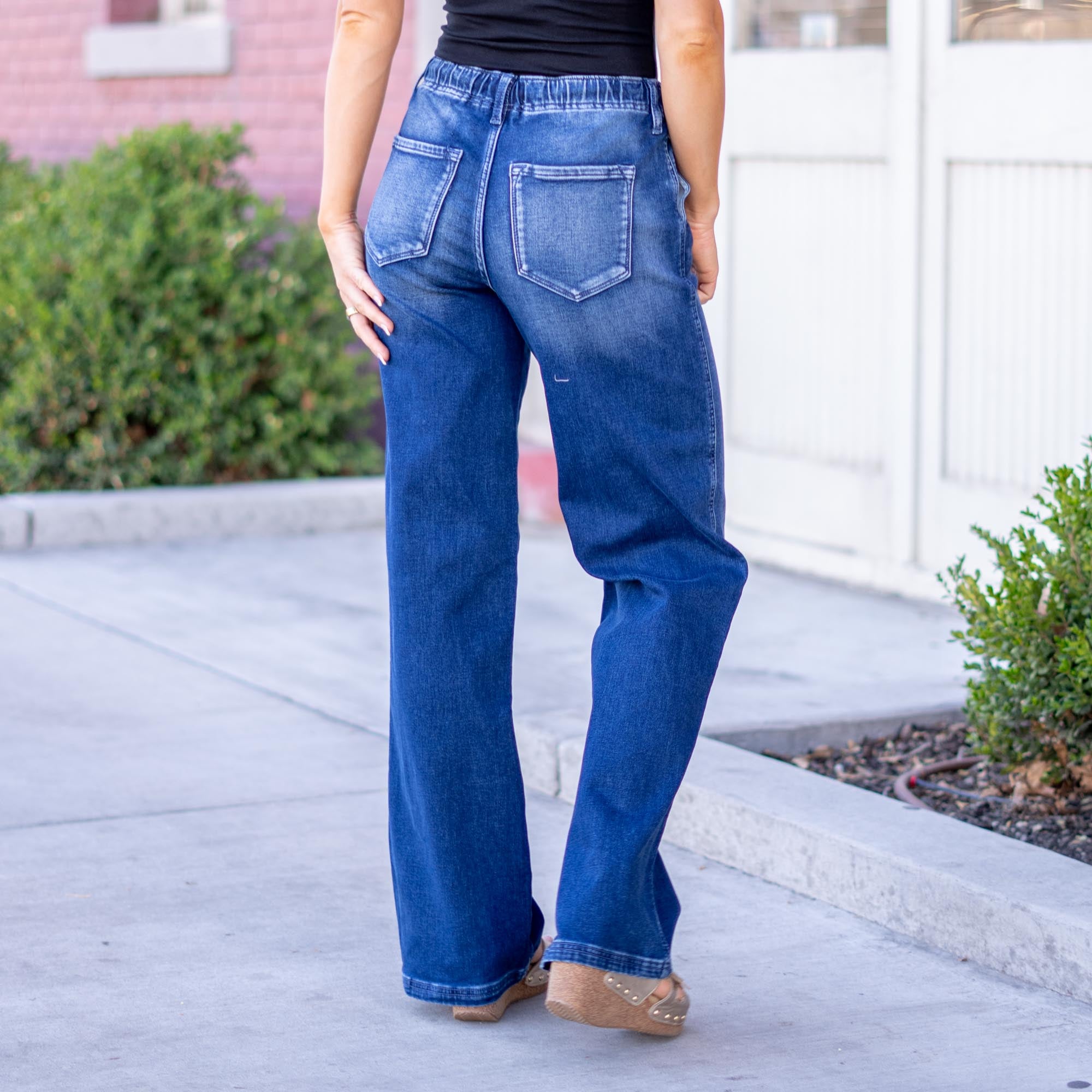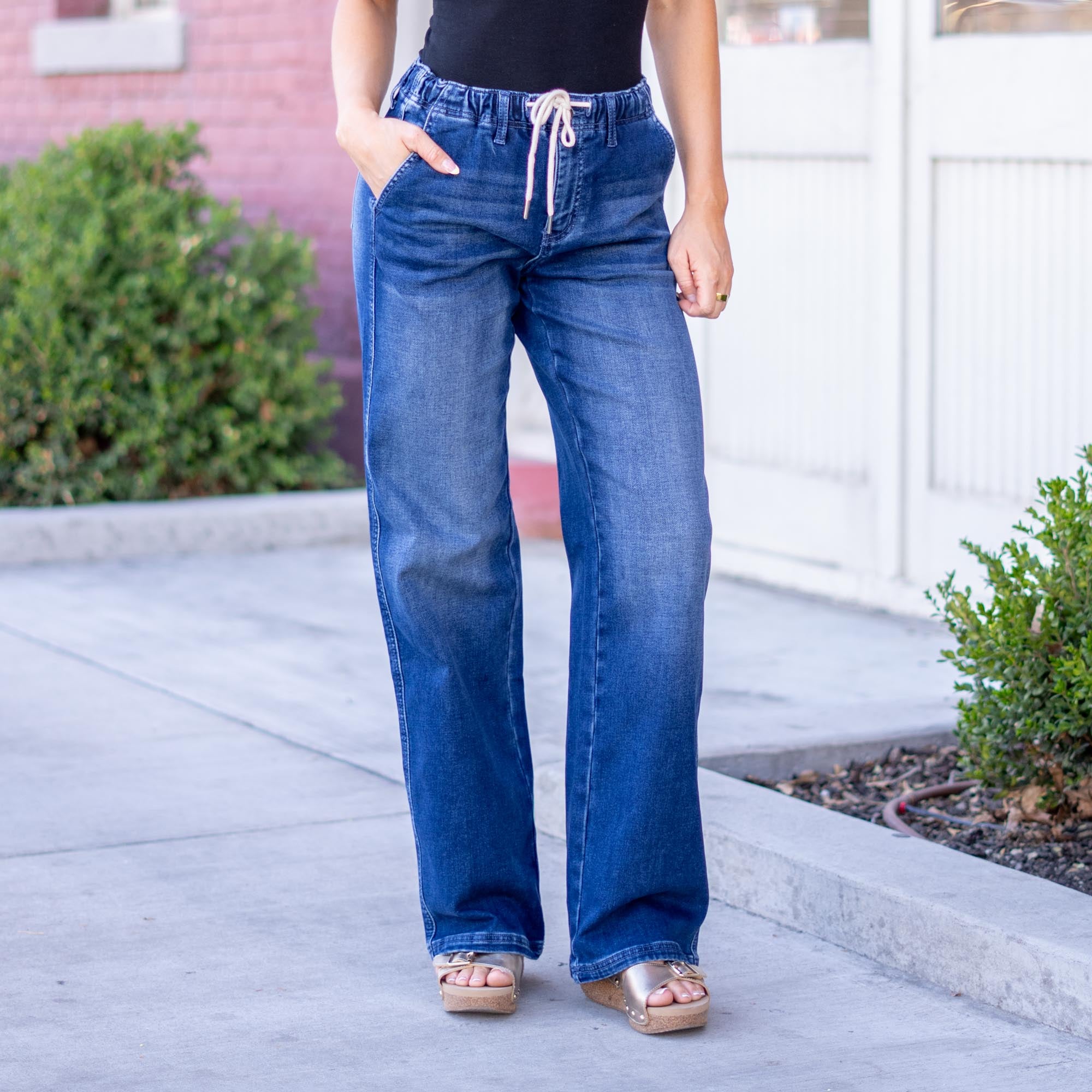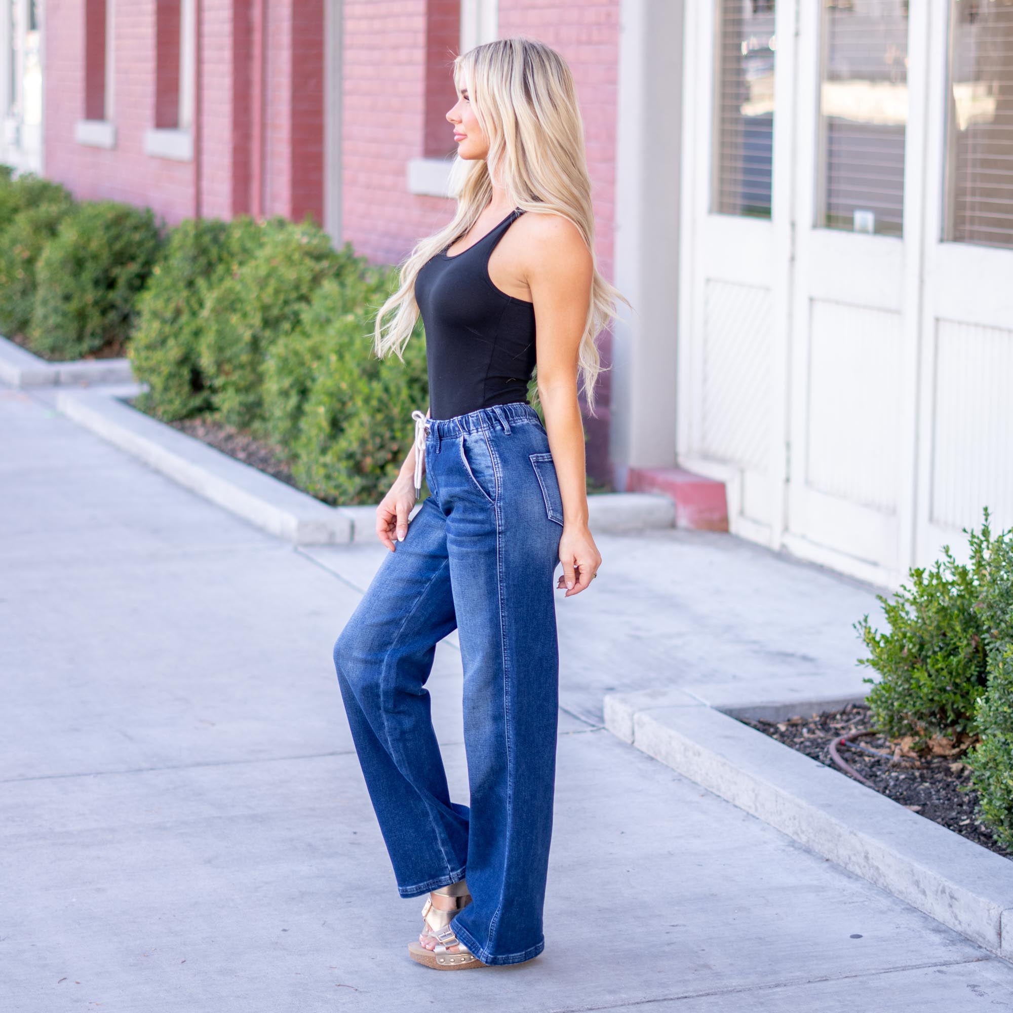 KanCan Quin Knit High Rise Wide Dark Blue Wash