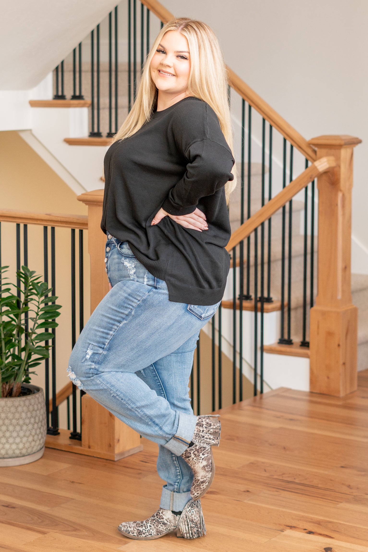Plus Size Teagan Mid Rise Button Fly Boyfriend (Long Inseam Option)