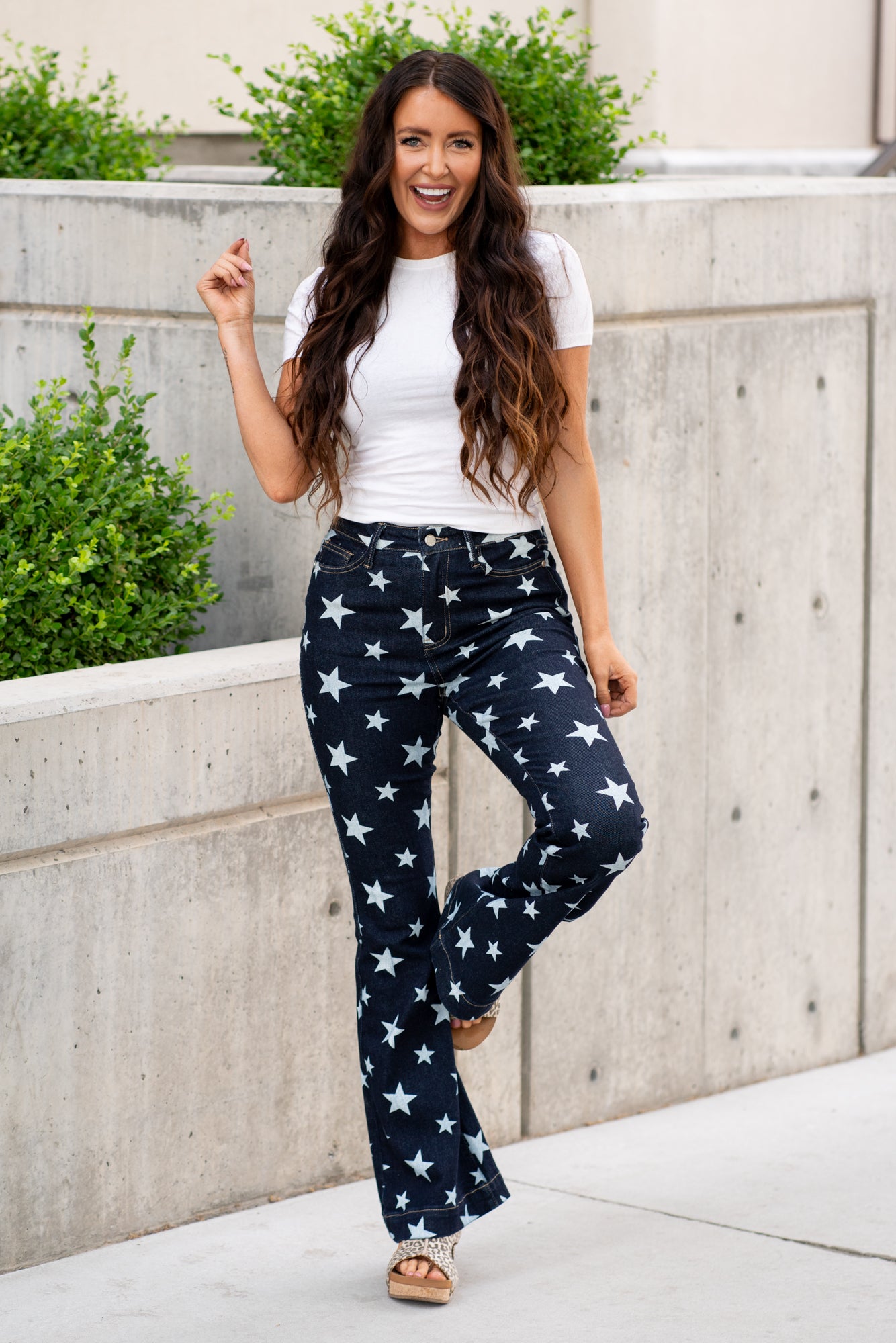 Stars All Over High Rise Flare Regular & Plus Sizes