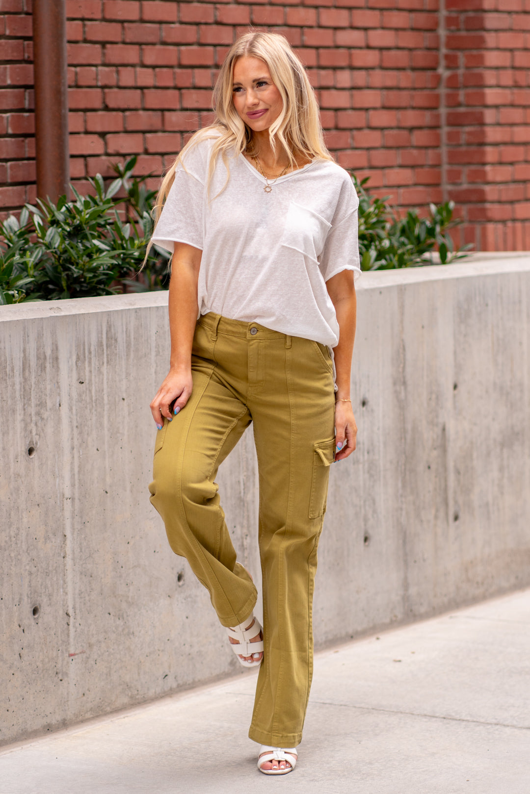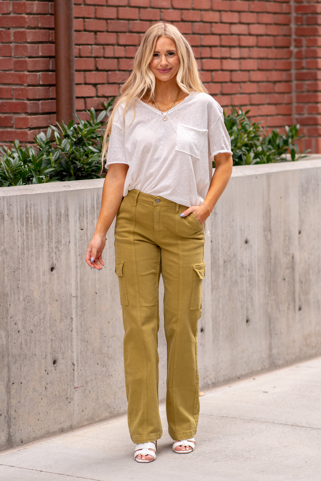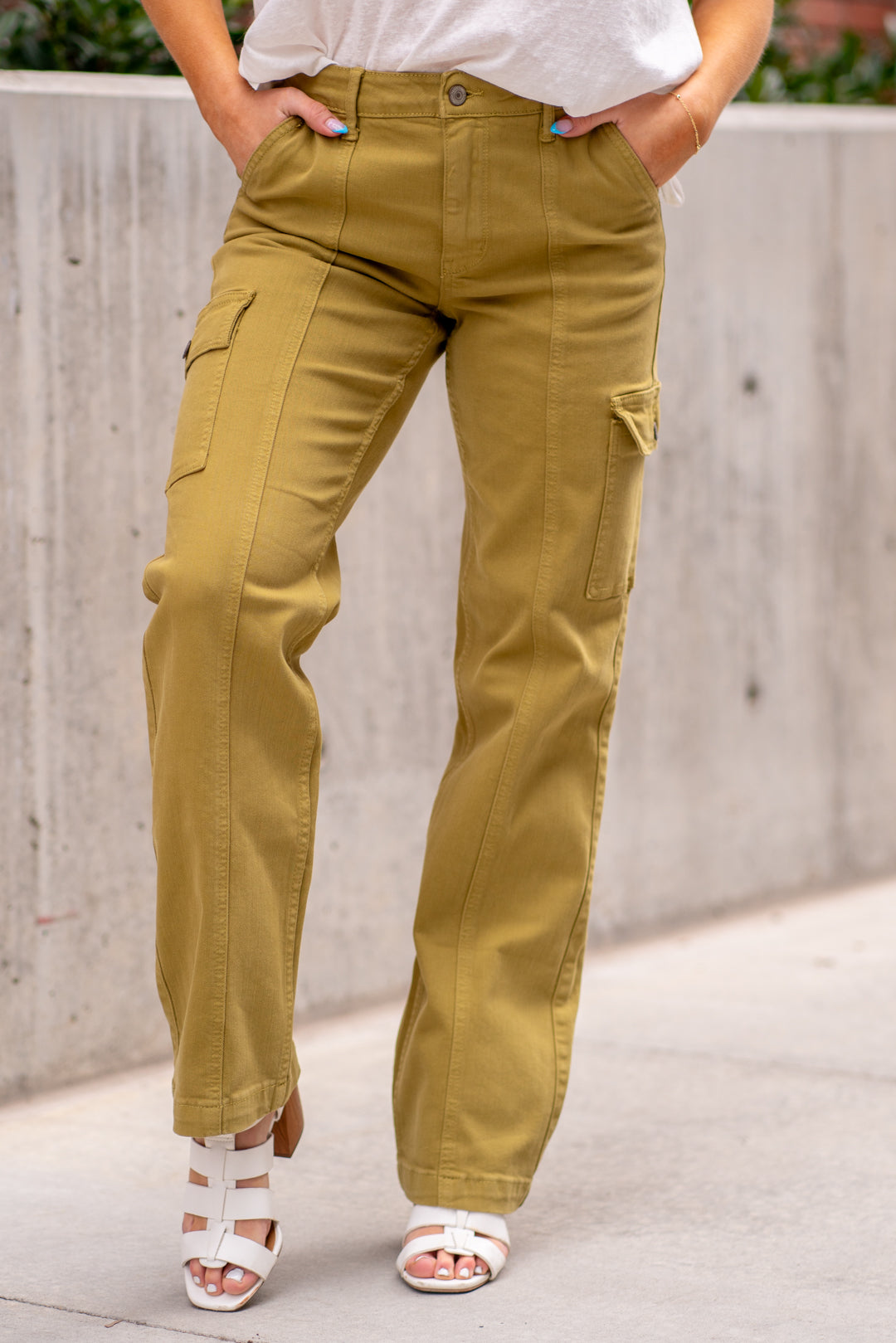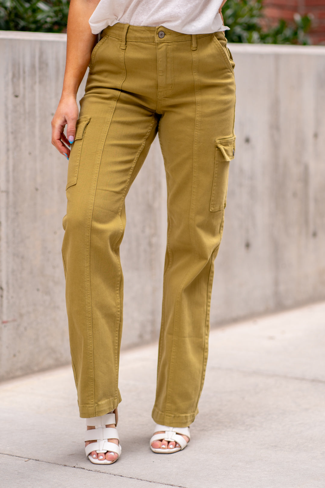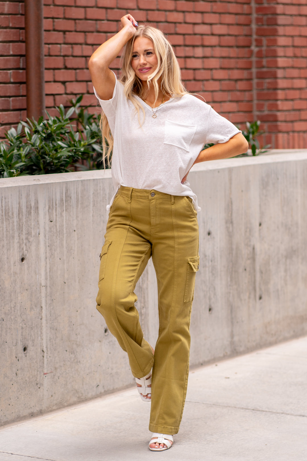 Introducing the Judy Blue jeans you've been dreaming of - our Stretchy High Rise Cargo Straight Leg in enchanting matcha green. These jeans blend comfort and style seamlessly with their high-rise fit and stretchy fabric that moves with you. The cargo-style pockets add a touch of utility chic, while the straight leg silhouette keeps things effortlessly versatile. In the mesmerizing matcha green, these jeans are your go-to for making a bold fashion statement while staying comfortably on trend.